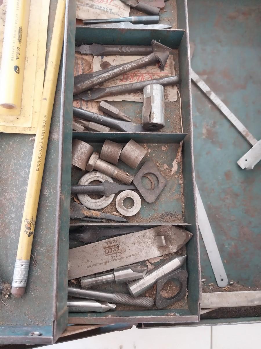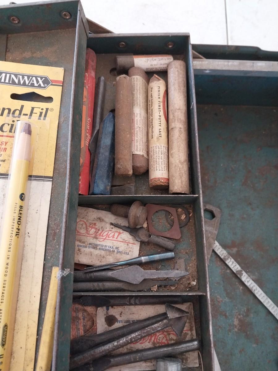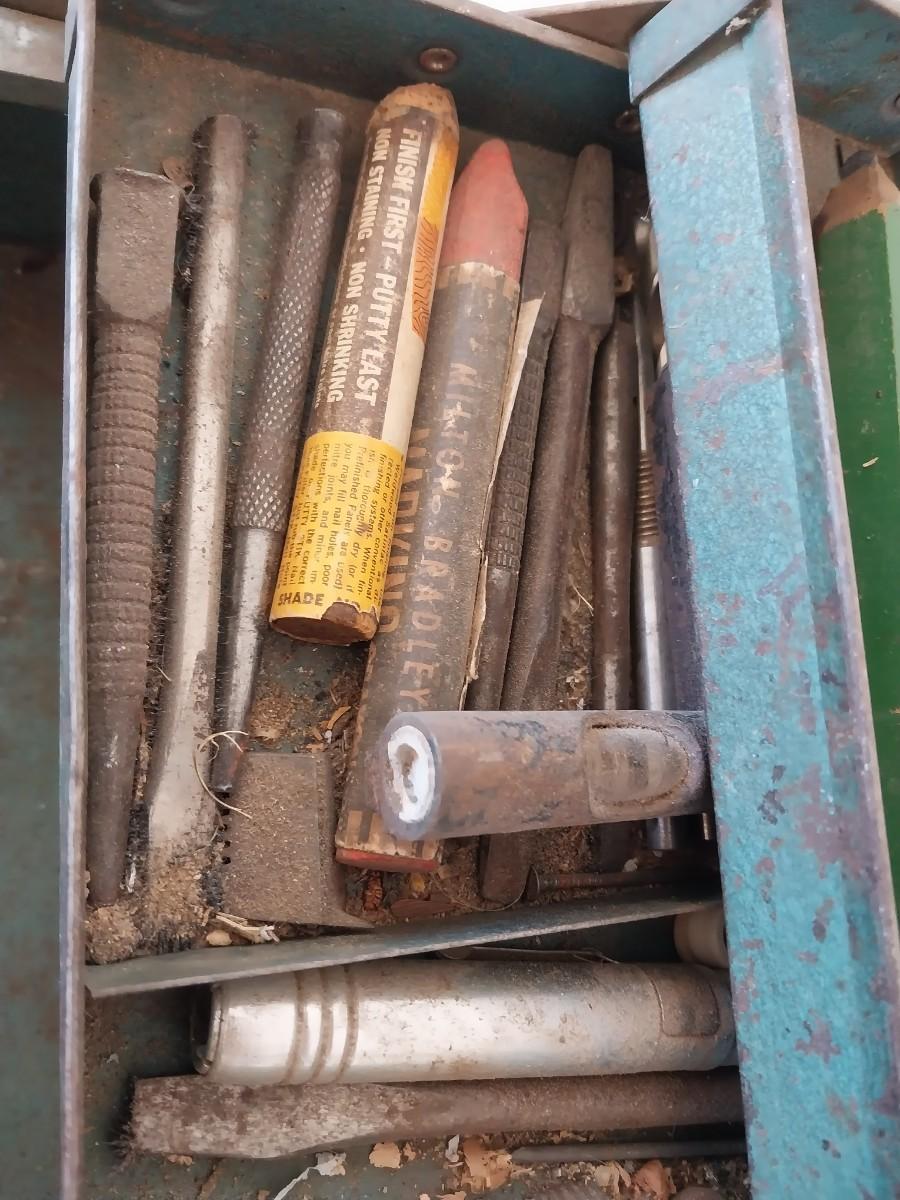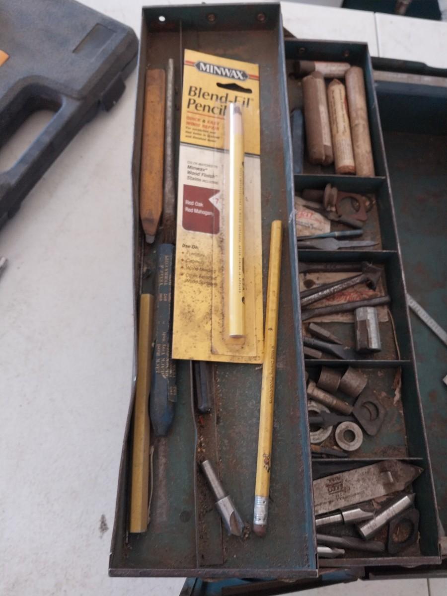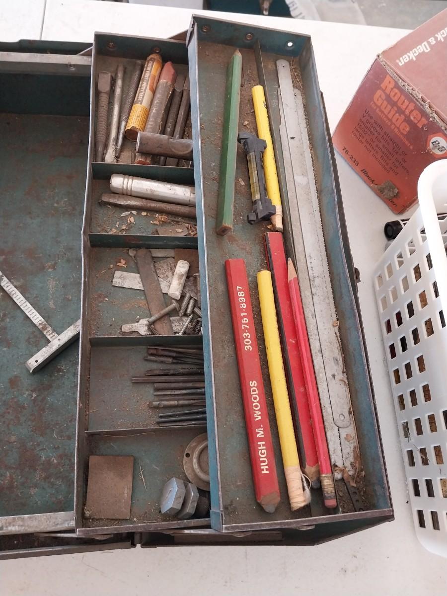 TAP AND DIE SET, SCREW EXTRACTOR, METAL TOOL BOX AND MORE,