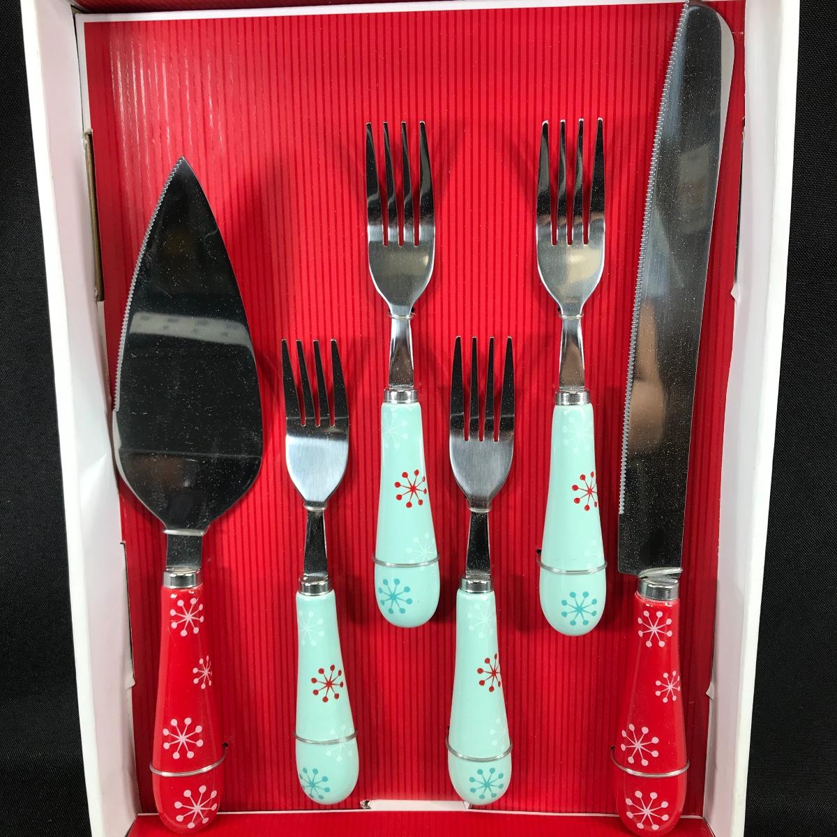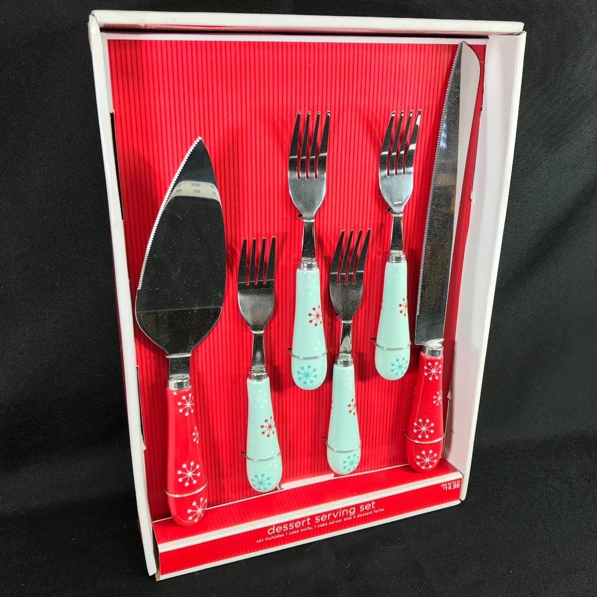 Up for auction is a six piece dessert serving set from Target°. It’s brand new in it’s original box.