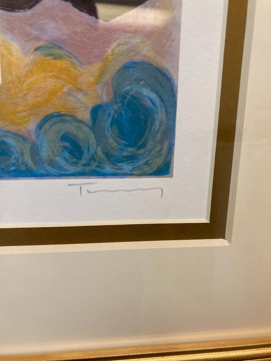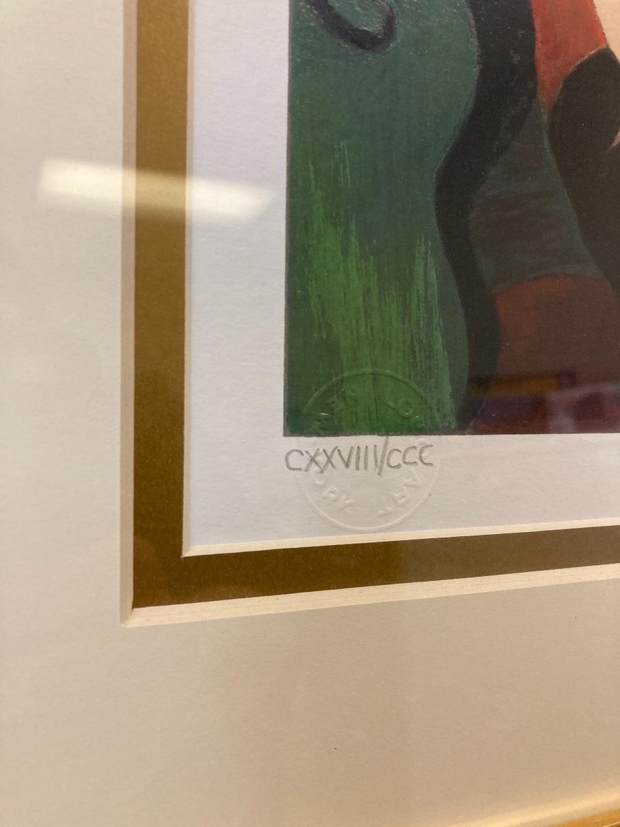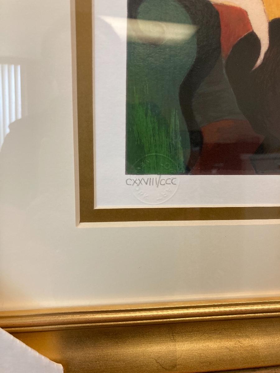 Excellent condition. Measures 19”w x 20”h overall. Artwork alone measures 10”w x 11”h. Includes professional matting and gallery frame shown. Please see pictures for details. Packaging and shipping services available. Please contact us, if you need a shipping quote, before bidding.