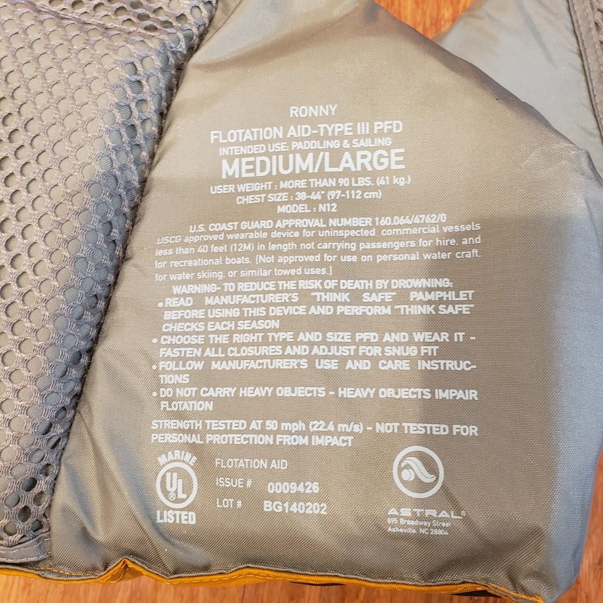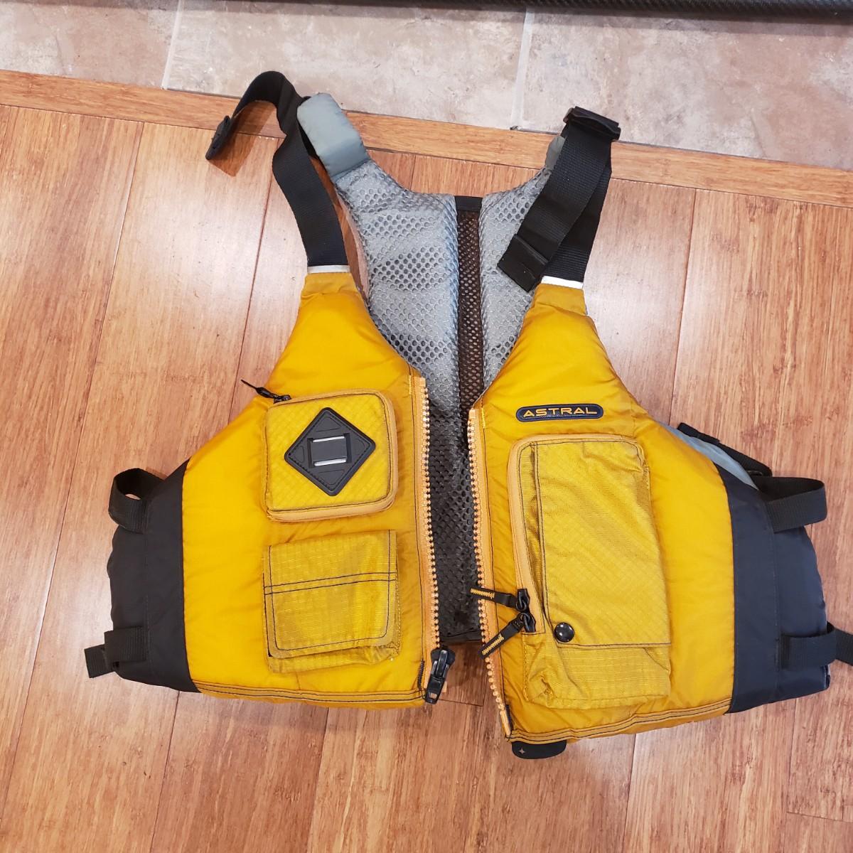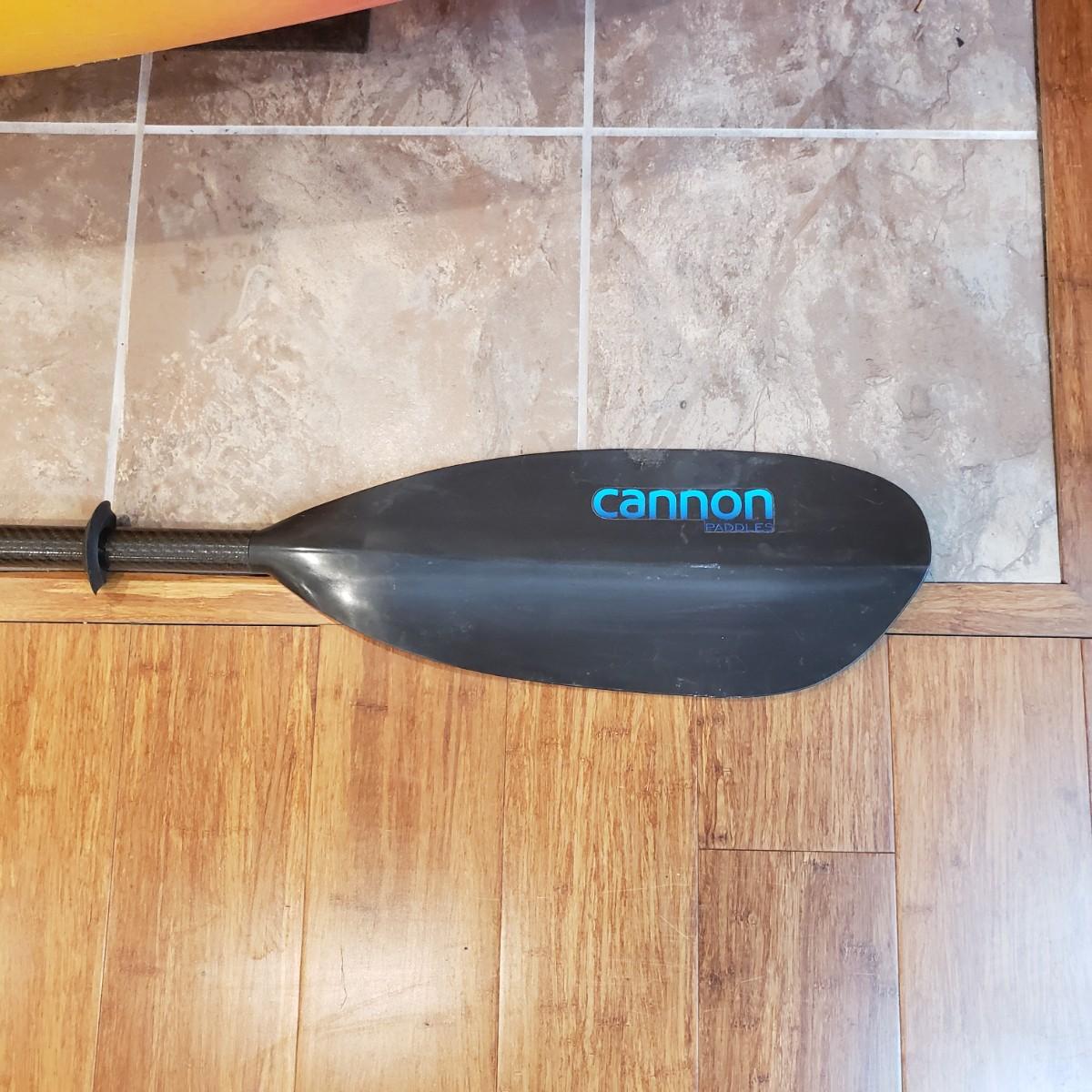 Also included is a Canon adjustable paddle. As pictured the paddle measures 8'. It has three holes to adjust the direction of the blade. The Astral life jacket is a size medium/large. See pictures for details. There are two racks to hold Kayak against a wall. Please bring Phillips screwdriver to assist in removal.