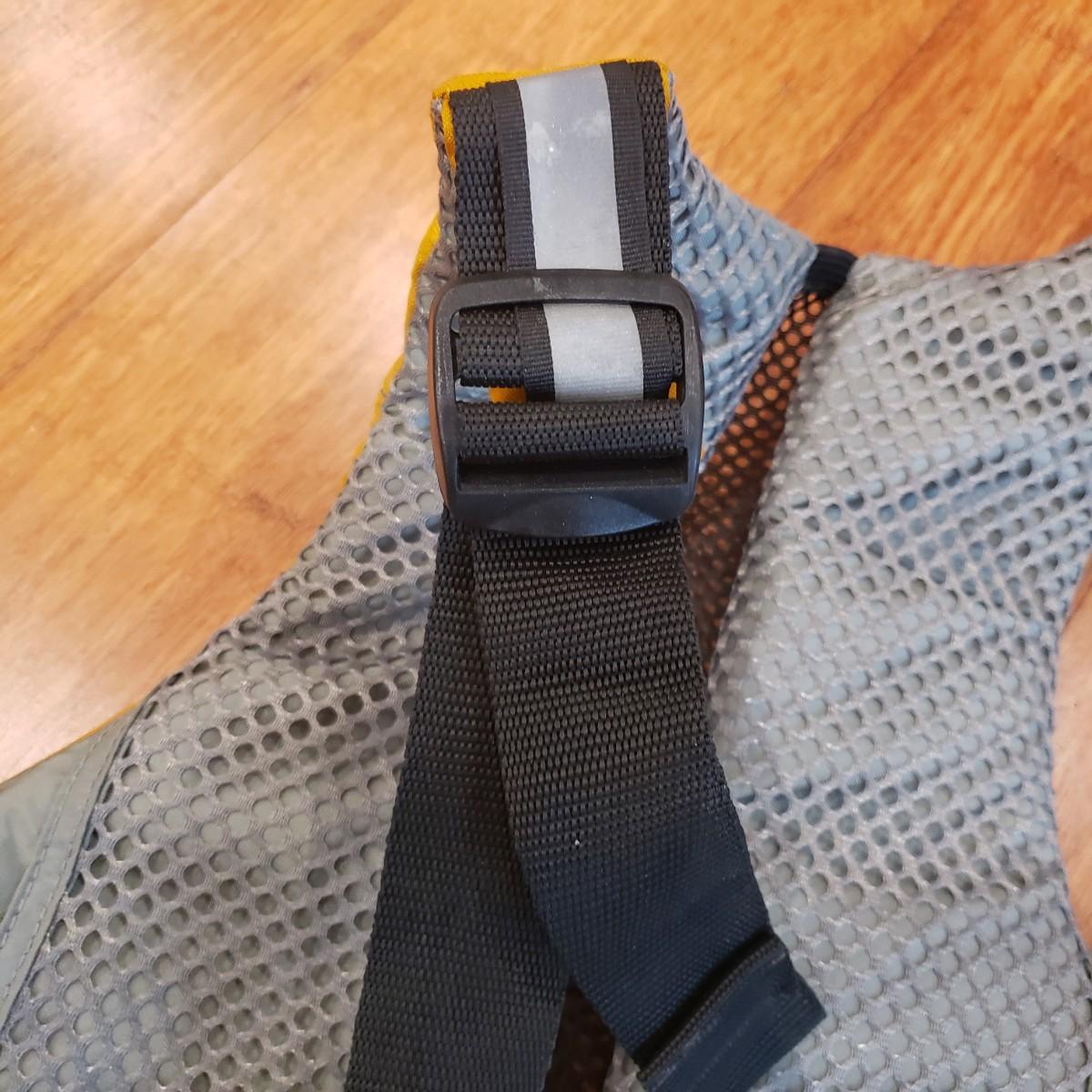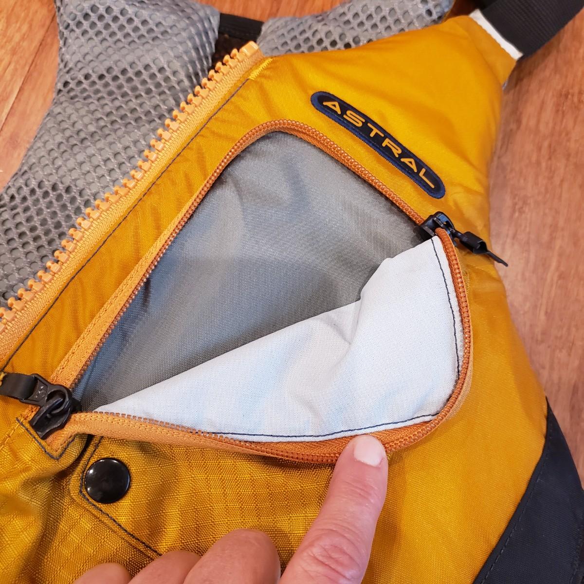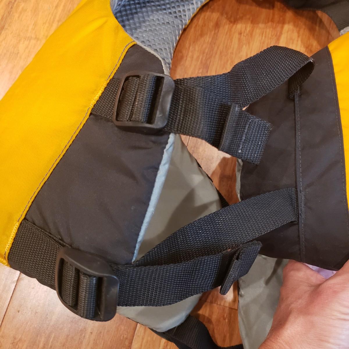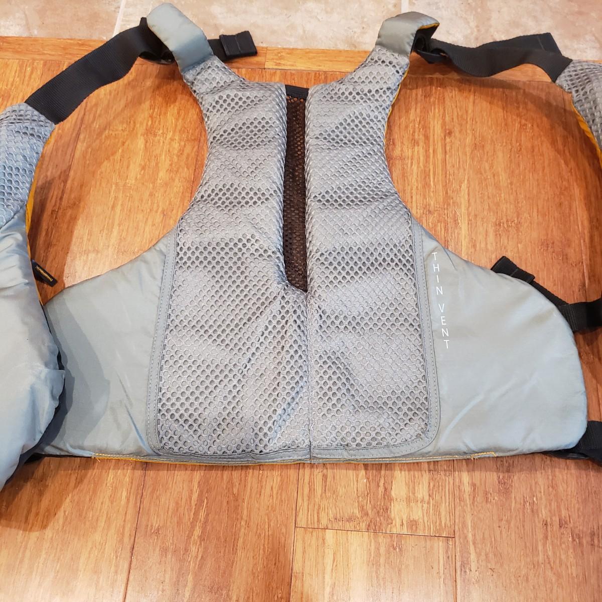 Also included is a Canon adjustable paddle. As pictured the paddle measures 8'. It has three holes to adjust the direction of the blade. The Astral life jacket is a size medium/large. See pictures for details. There are two racks to hold Kayak against a wall. Please bring Phillips screwdriver to assist in removal.