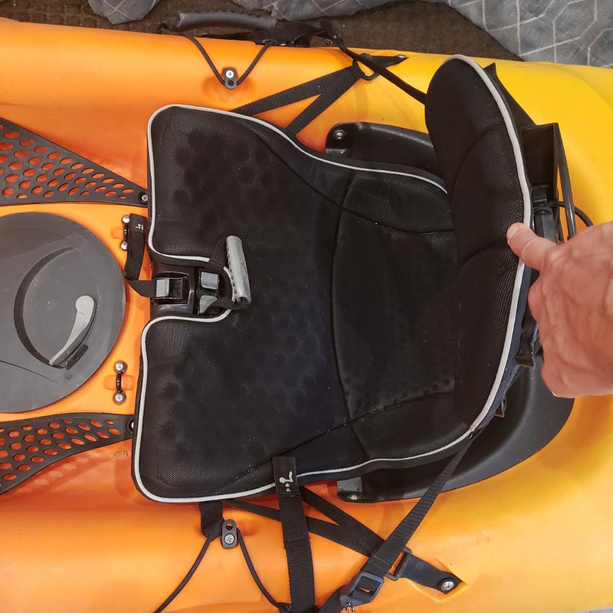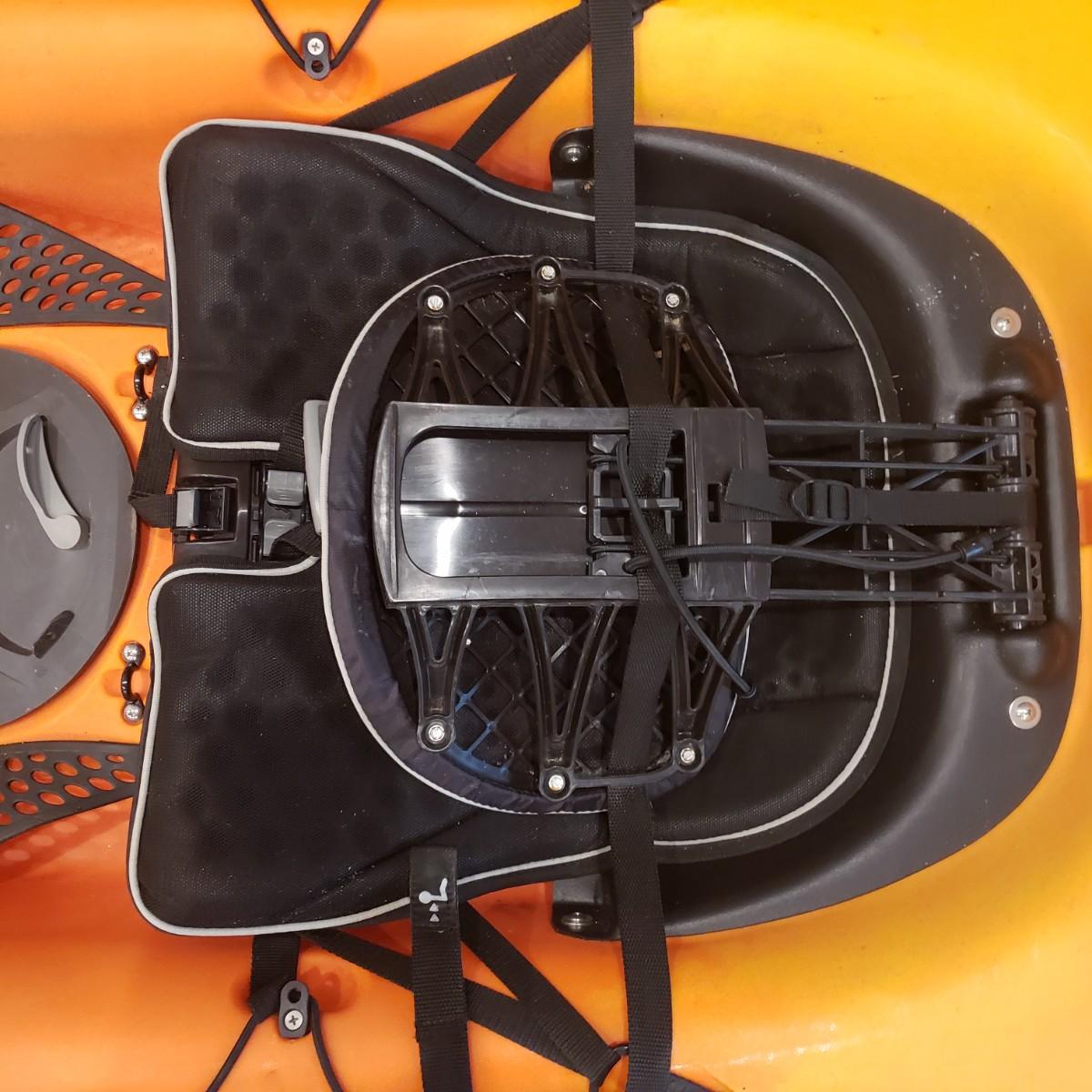Seating: Features a comfortable, fully adjustable seating system with mesh fabric and ergonomic 3D foam for airflow and lower back support. Storage: Includes a locking bow hatch, a removable center dry box, and a large rear tank well suitable for coolers, fishing gear, or camping equipment.