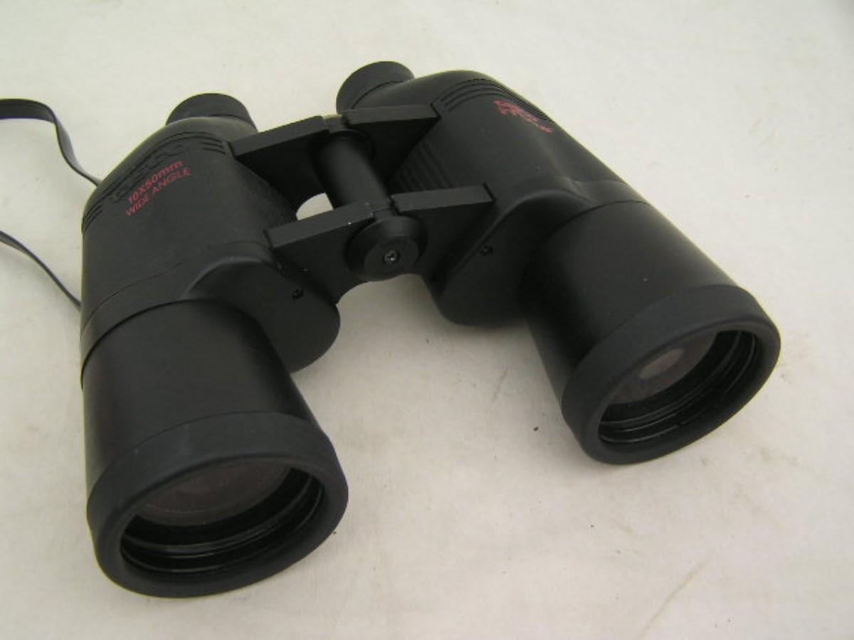 Tasco 10x50mm wide angle “InFocus” binoculars. W/carry bag & caps