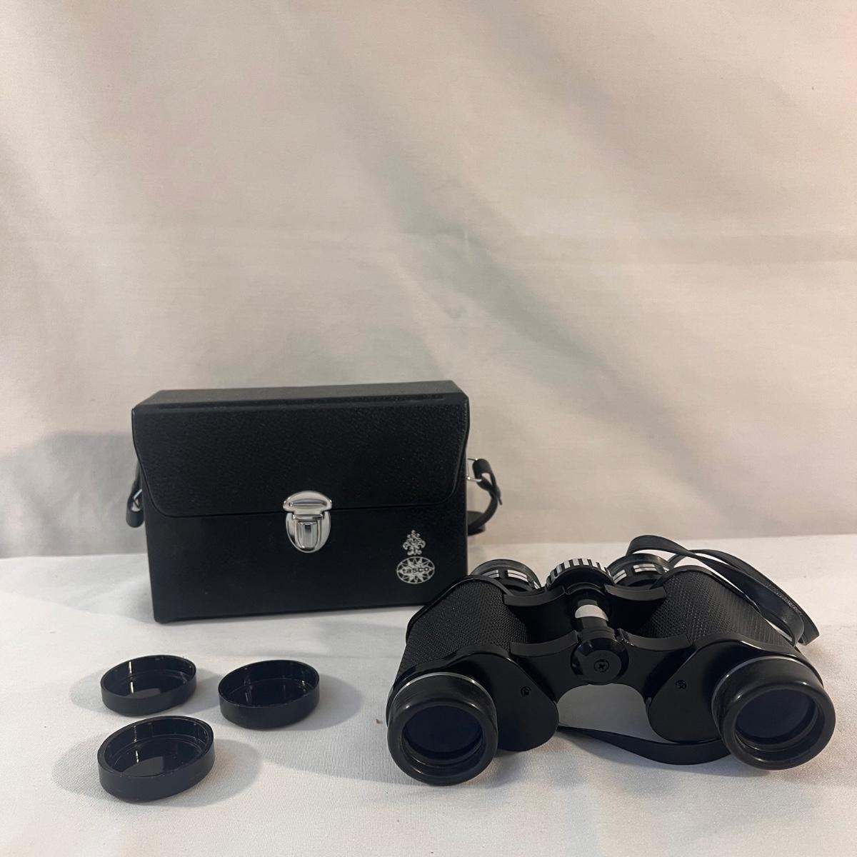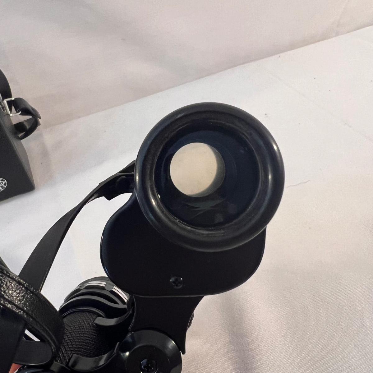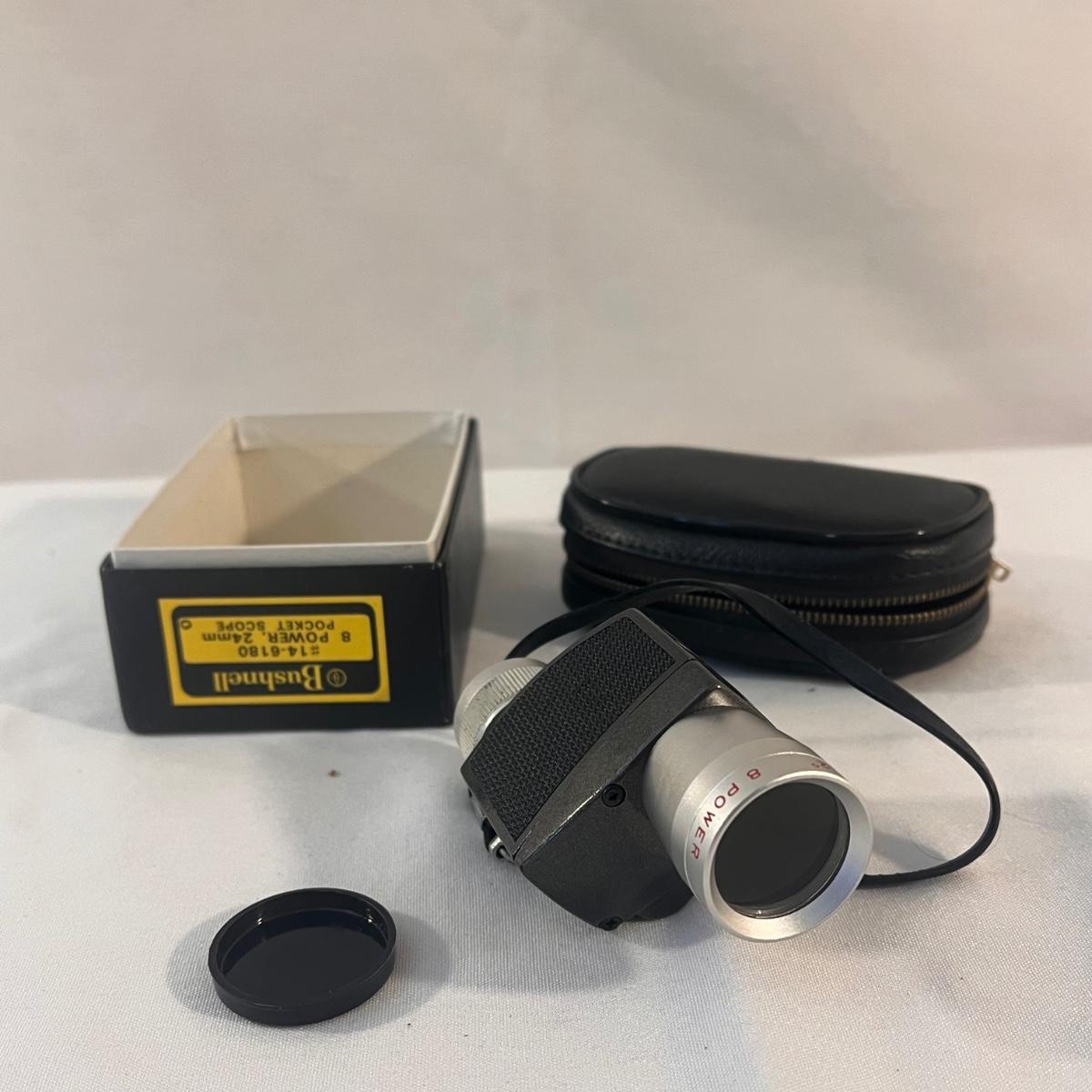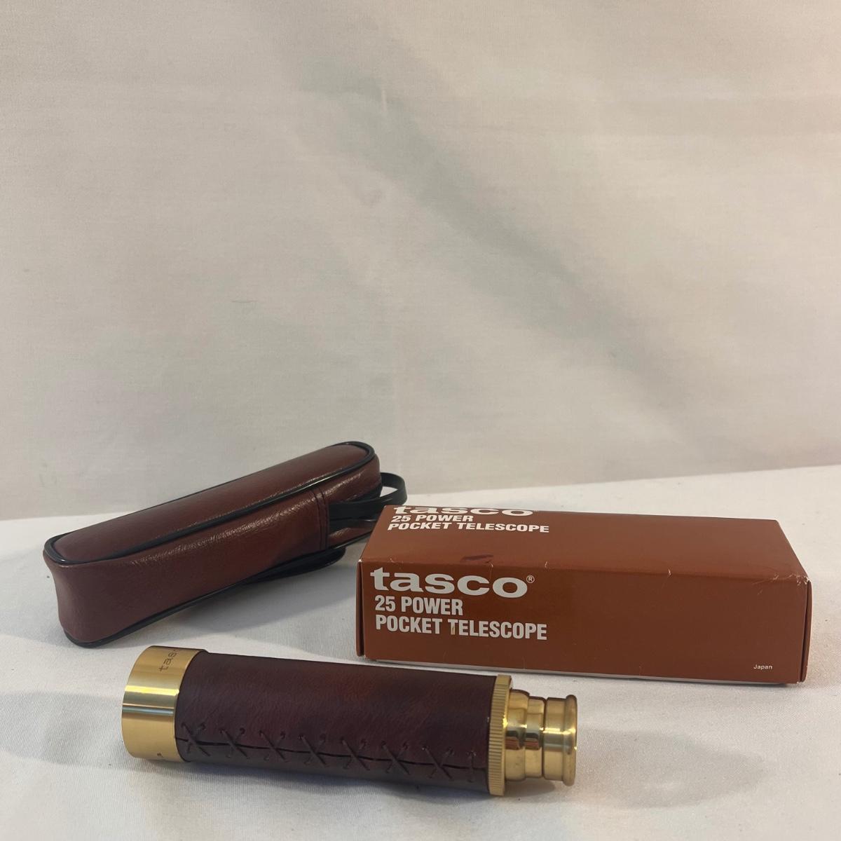 This lot includes one Tasco pair of binoculars, one Tasco 25 power pocket telescope, one Bushnell pocket scope, and one pair of Dienstglas binoculars. The Dienstglas binoculars are the largest pair measuring 7” x 7” x 2”H. Those binoculars appear to be from 1944. The smallest is the Bushnell Pocket Scope that measures 2” x 1” x 3.5”H. Every item comes in their own case. All in good condition. Shipping available.