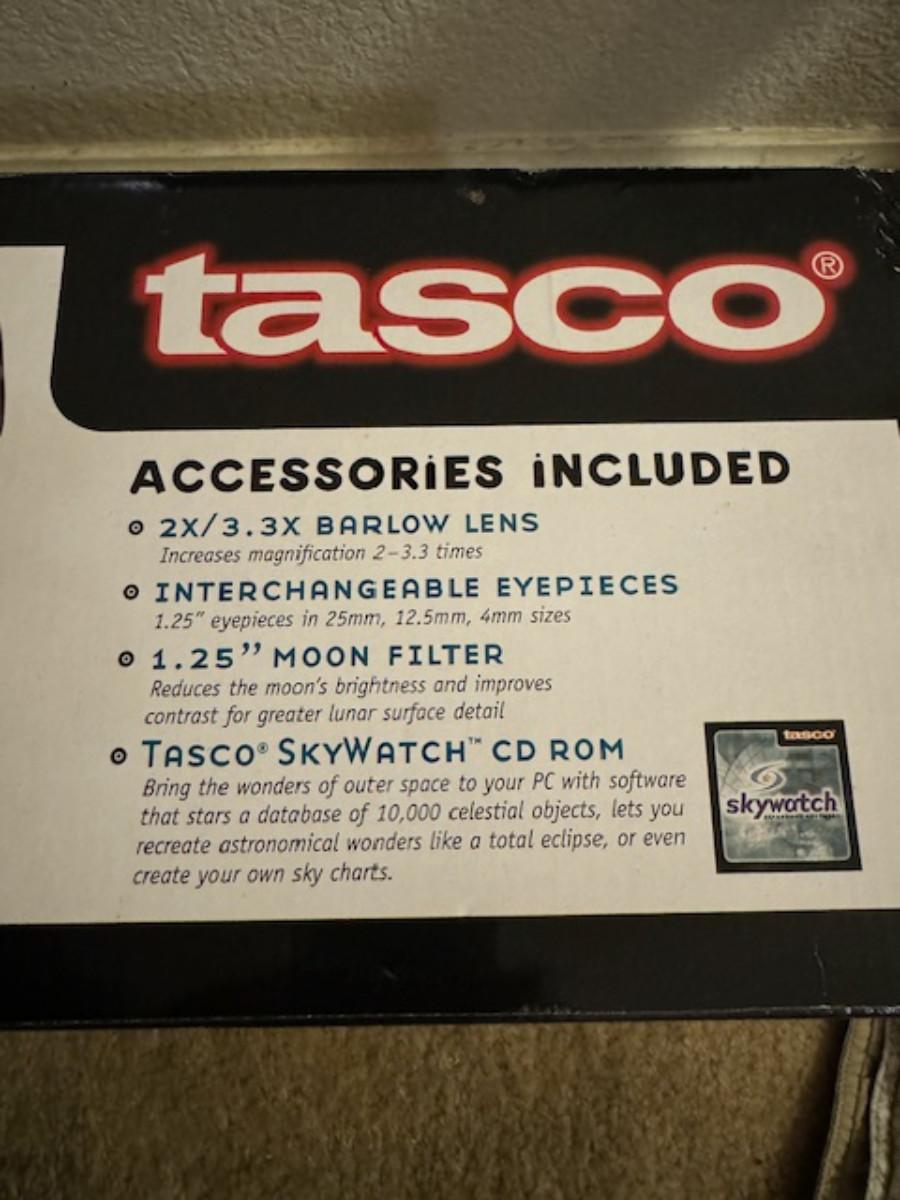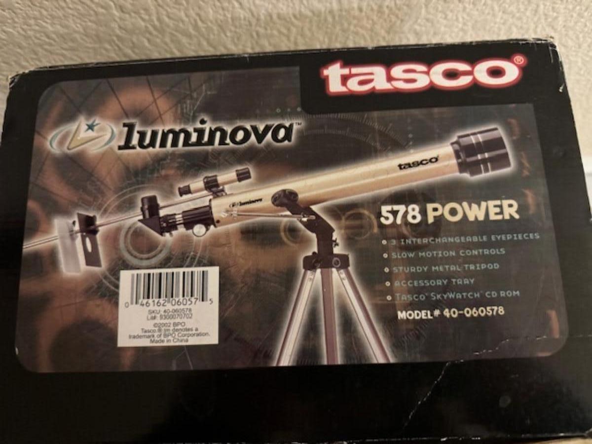 Tasco Luminova 578 Power Refractor Telescope with box and extra lenses. Model # 40-060578