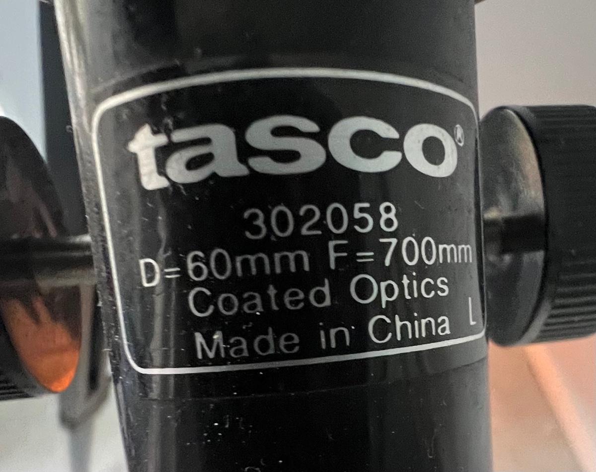 Working at time of catalog. Includes telescope and tripod only. 52" H x 22" L. This item is located another location. Further arrangements will need to be made to pick up this item. [EW]