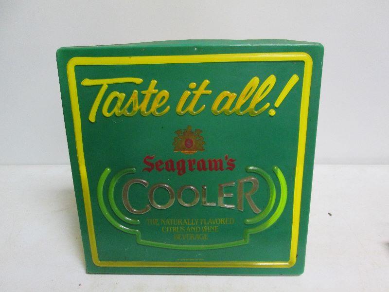 Original Embossed Stamped Taste It All! Seagram's Cooler Advertisng Sign