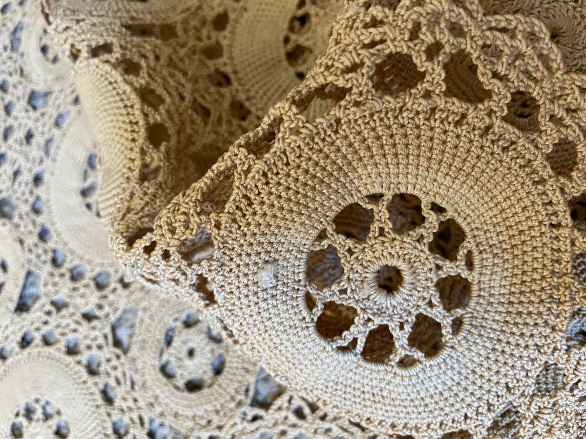 I don't see this large of tatting...ever! There are some stains, but the lace is