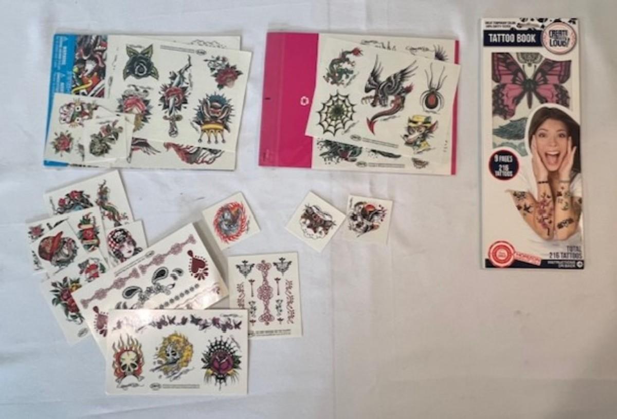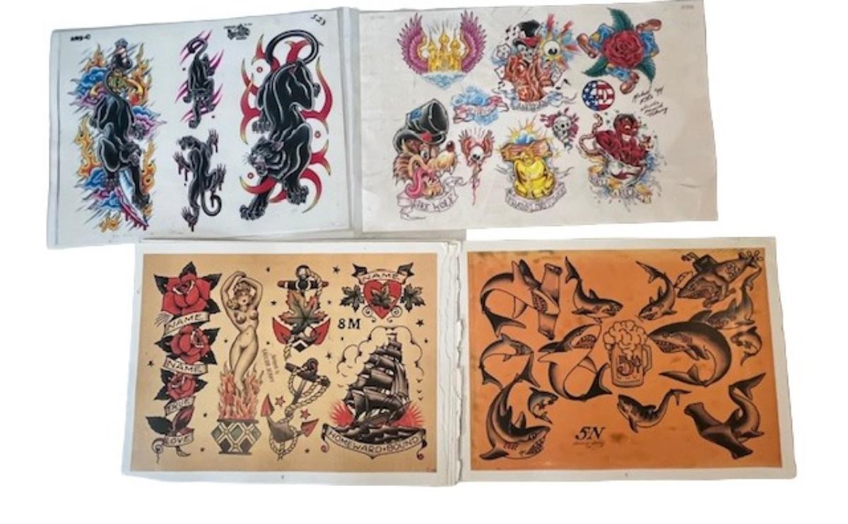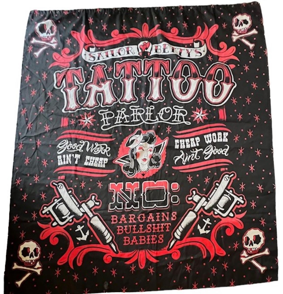 Includes a Sailor Betty's Tattoo Parlor shower curtain/banner, flash art, and more. Shipping dimensions: 19" x 13".
