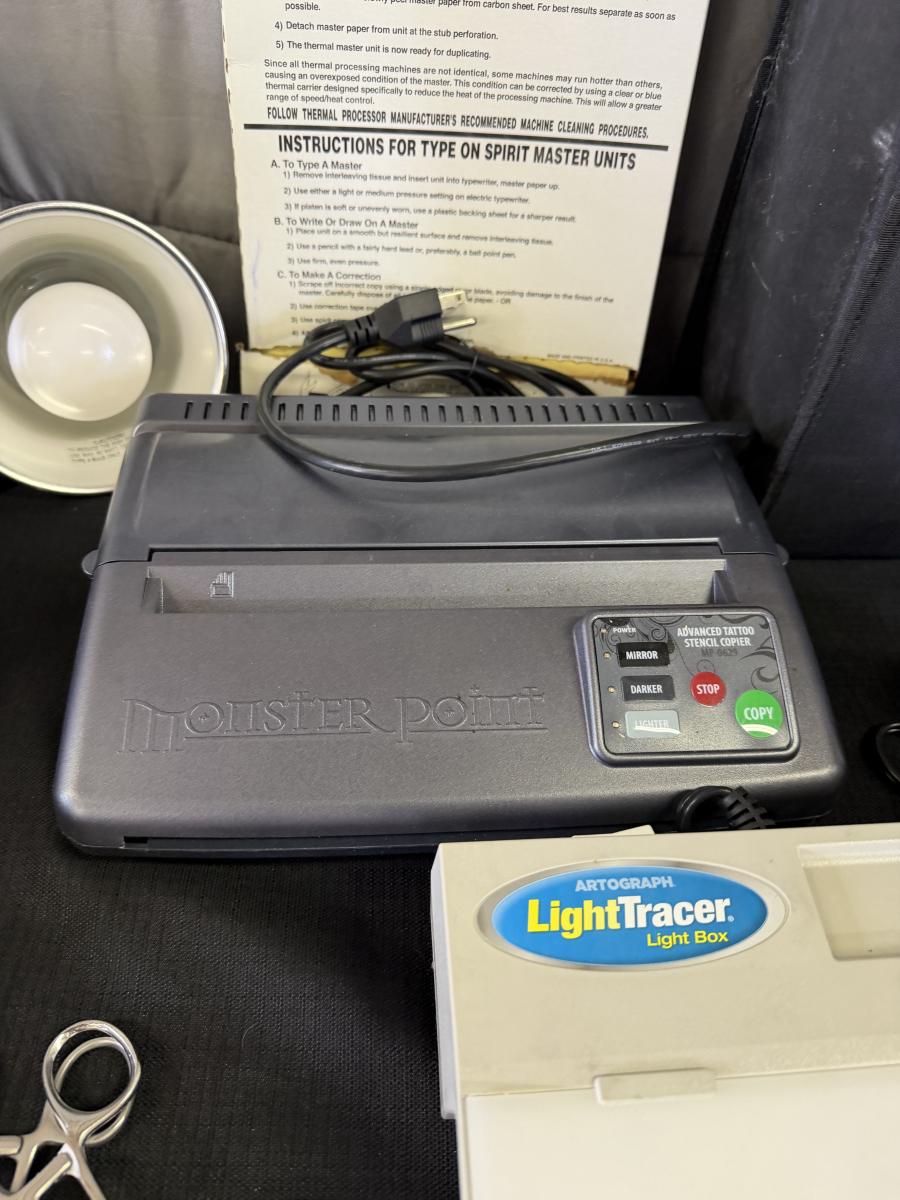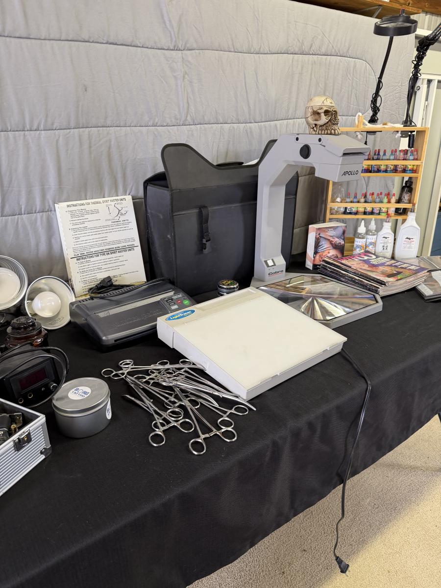 Lot of Tattoo Supplies Lights, Tracers, books and more.