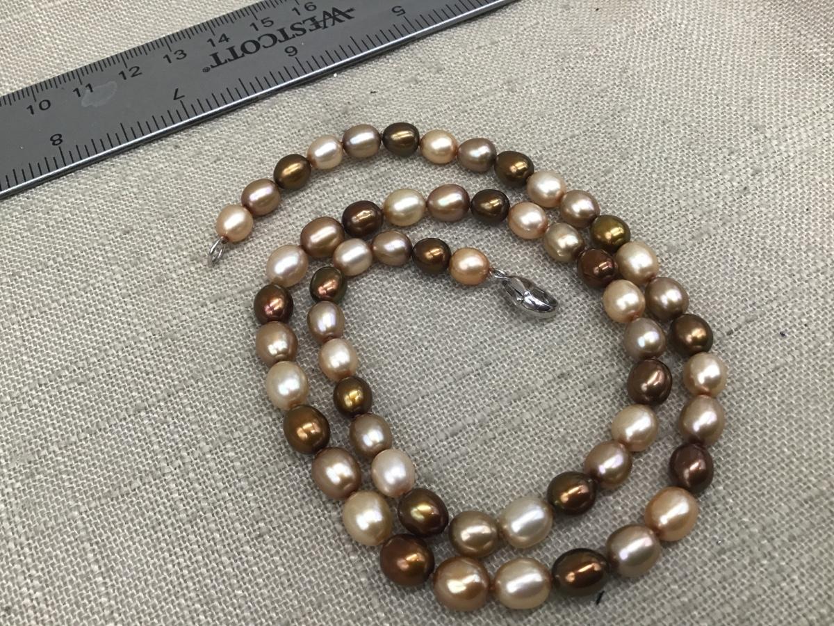 Taupe Champagne Bronze Pearl Necklace 925 Clasp