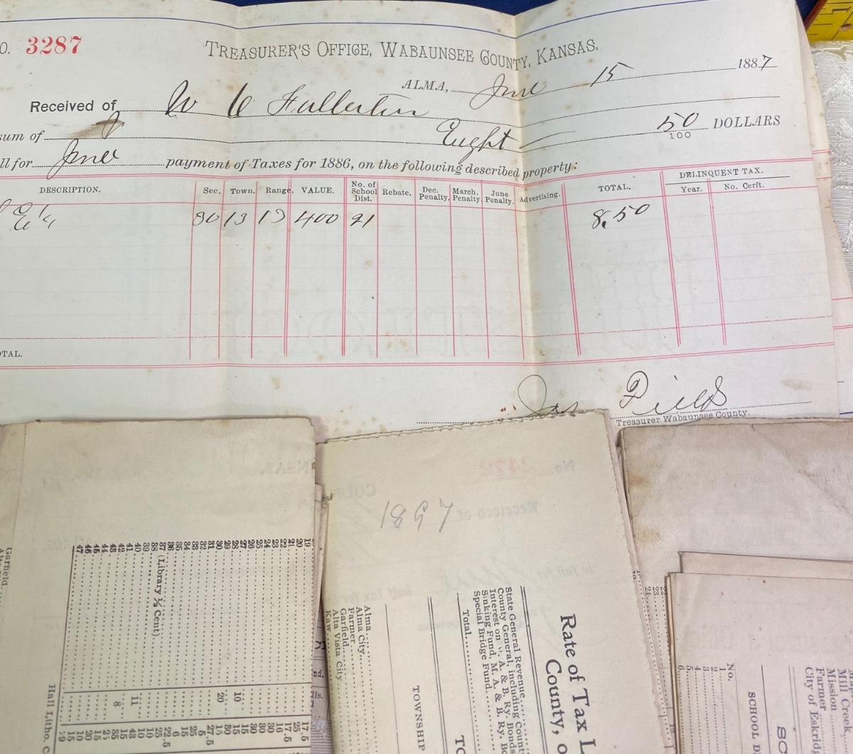 Tax receipt for 1887 and up.
