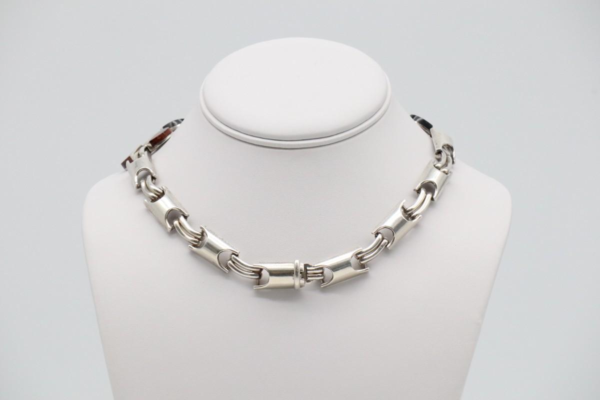 Taxco Mexico 950 Sterling Silver Necklace Onyx & Red Jasper TS-108, weighs approximately 117g and measures approximately 18".