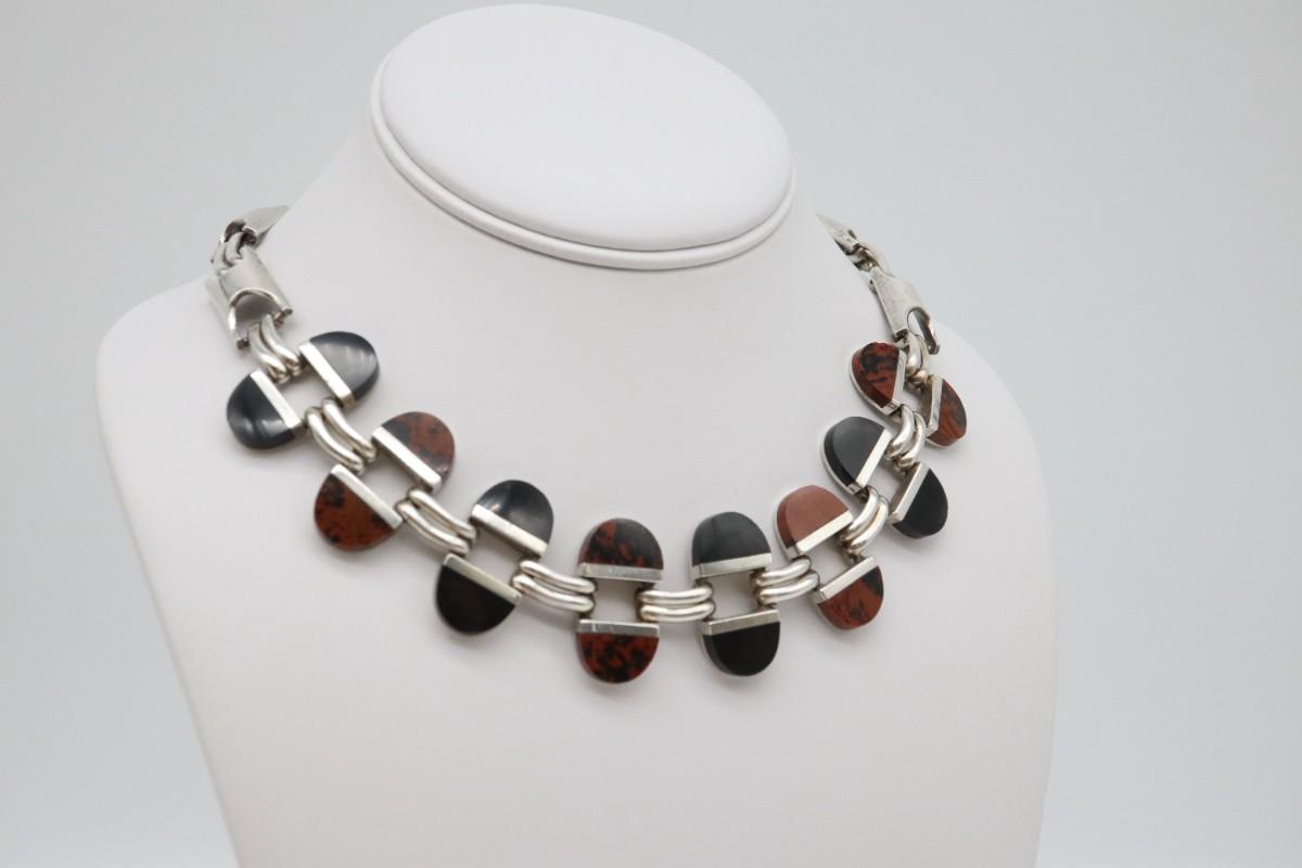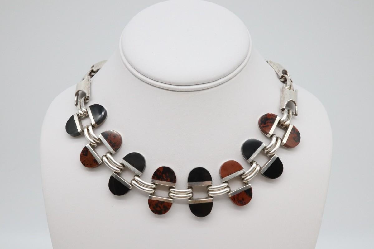 Taxco Mexico 950 Sterling Silver Necklace Onyx & Red Jasper TS-108