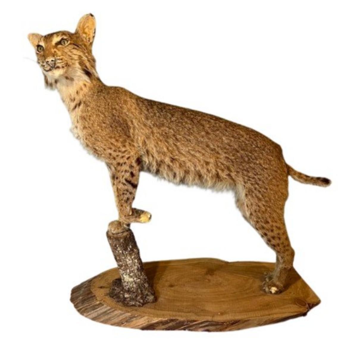 Taxidermy Bobcat Mounted on Live Edge Wood