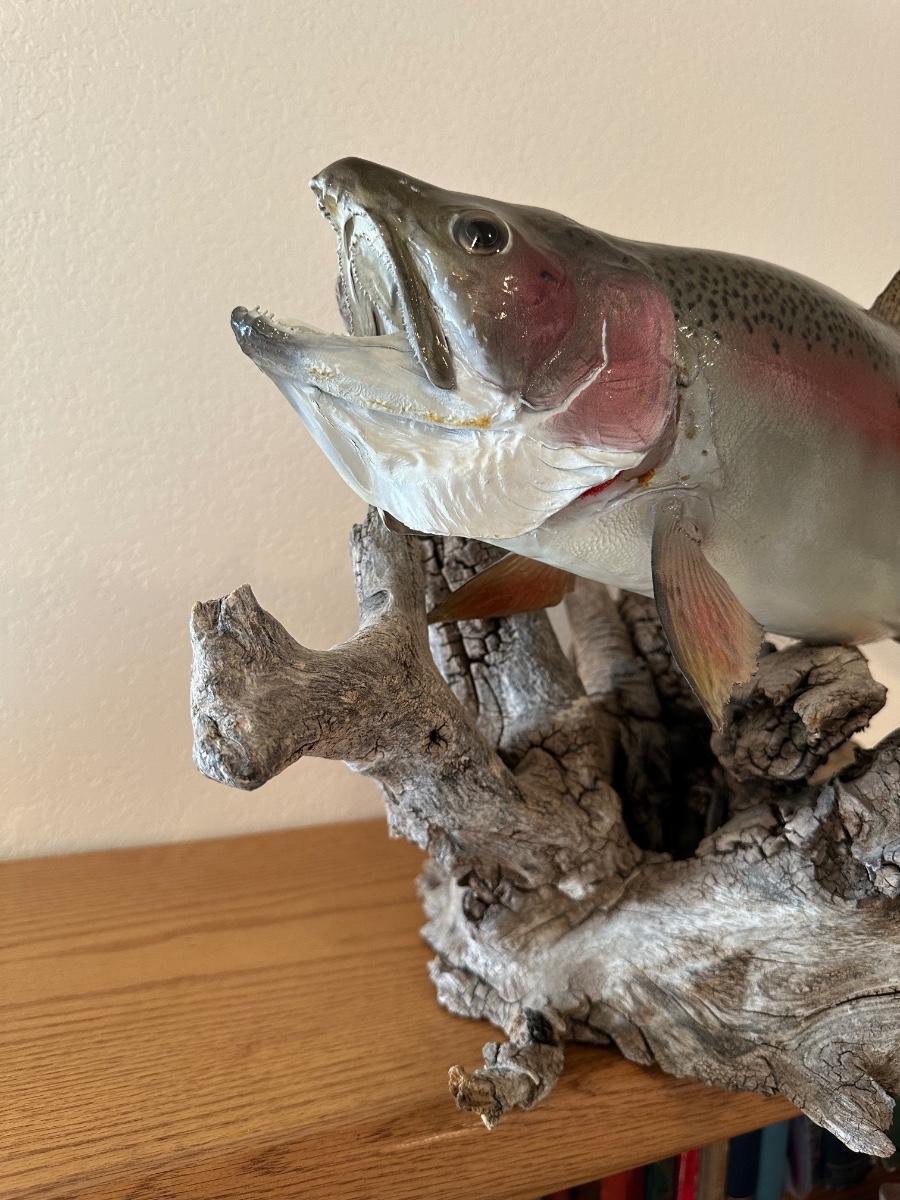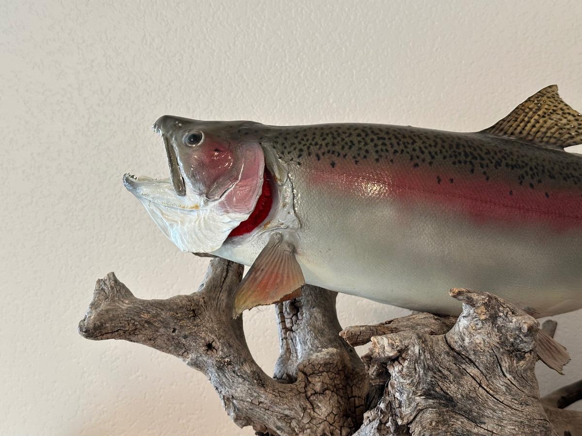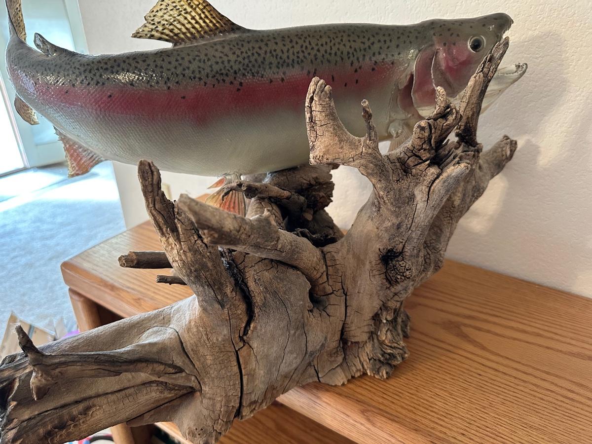 TAXIDERMY RAINBOW TROUT MOUNT ON DRIFTWOOD
