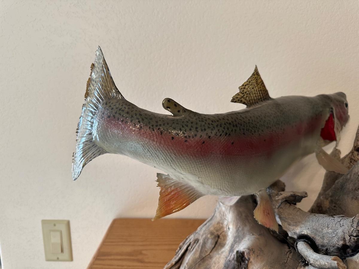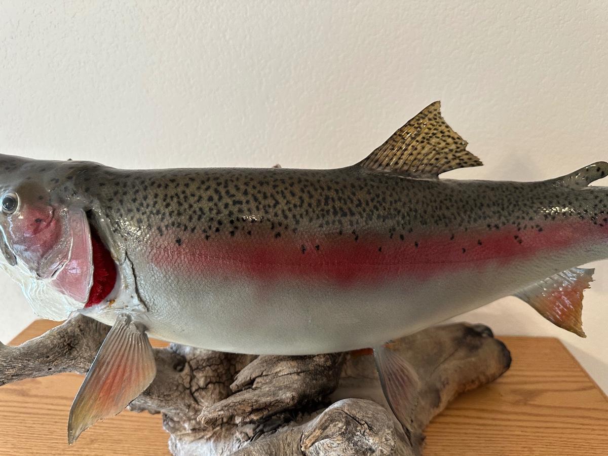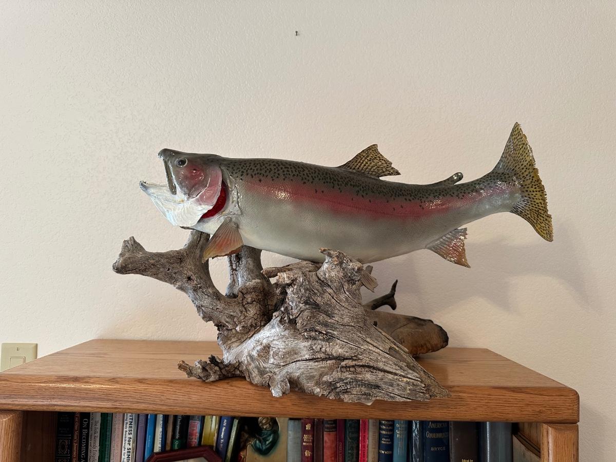 TAXIDERMY RAINBOW TROUT MOUNT ON DRIFTWOOD