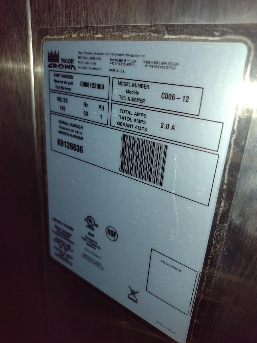 Taylor Commercial Brand Coffee Dairy Dispenser Choice C Shipping option via freight or local mover is Buyer's responsibility and expense. Buyer must have all shipping scheduled within the stated dates and times of pickup. Recommended local movers are Beaty Bros. Moving 828-201-2982 and Carolina Pack n Go 828-489-9773