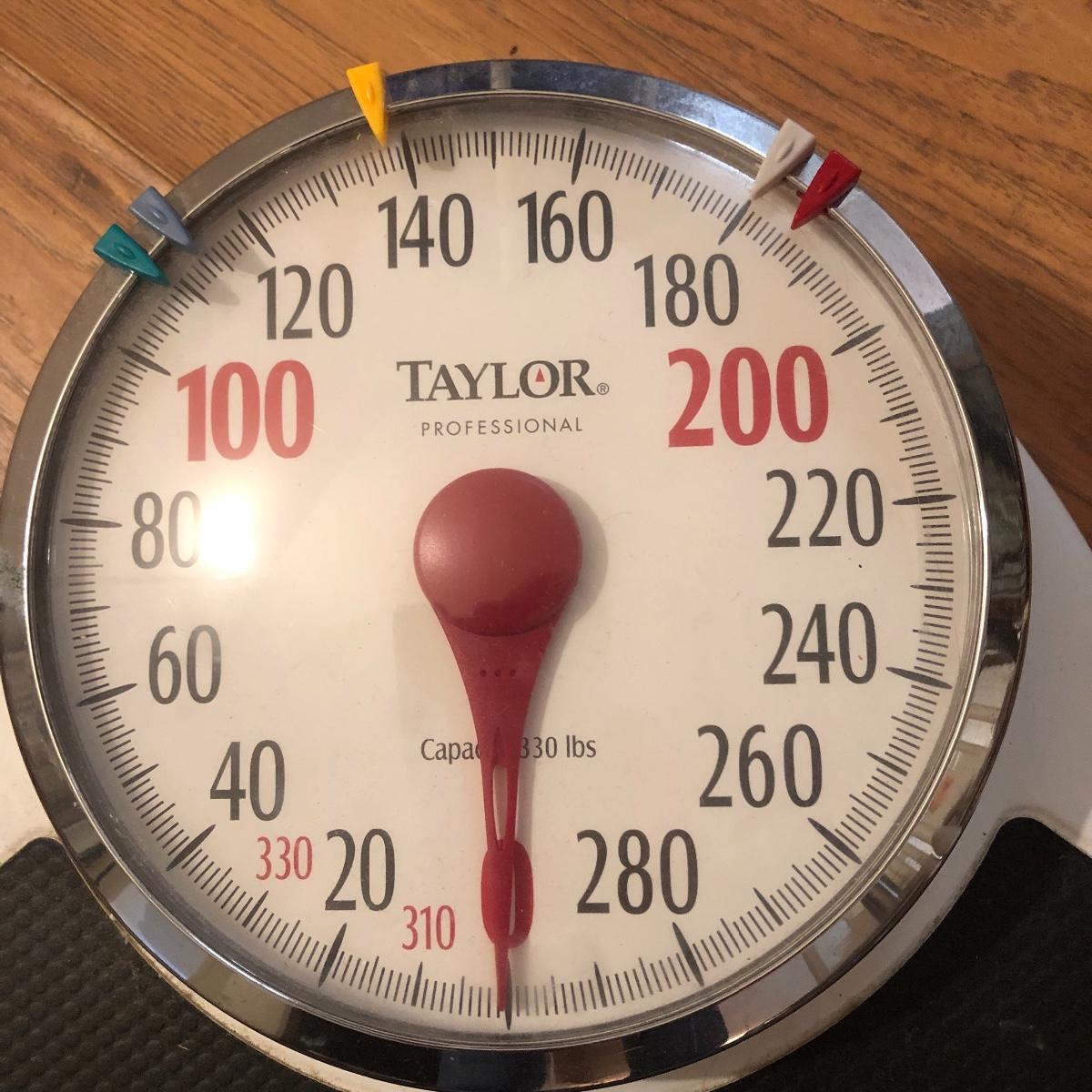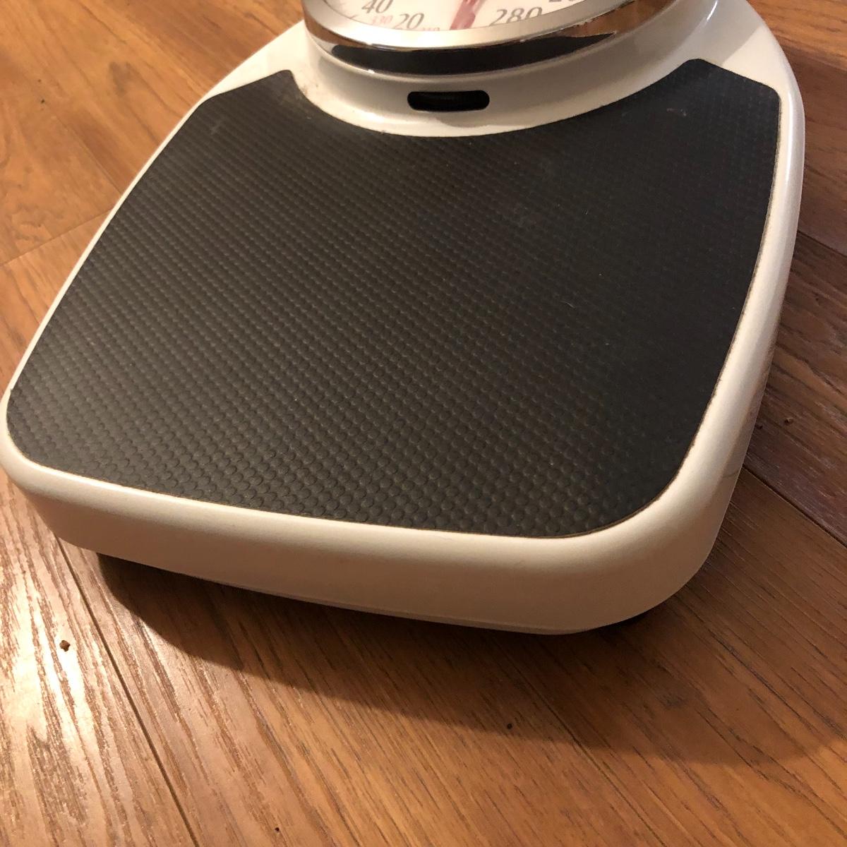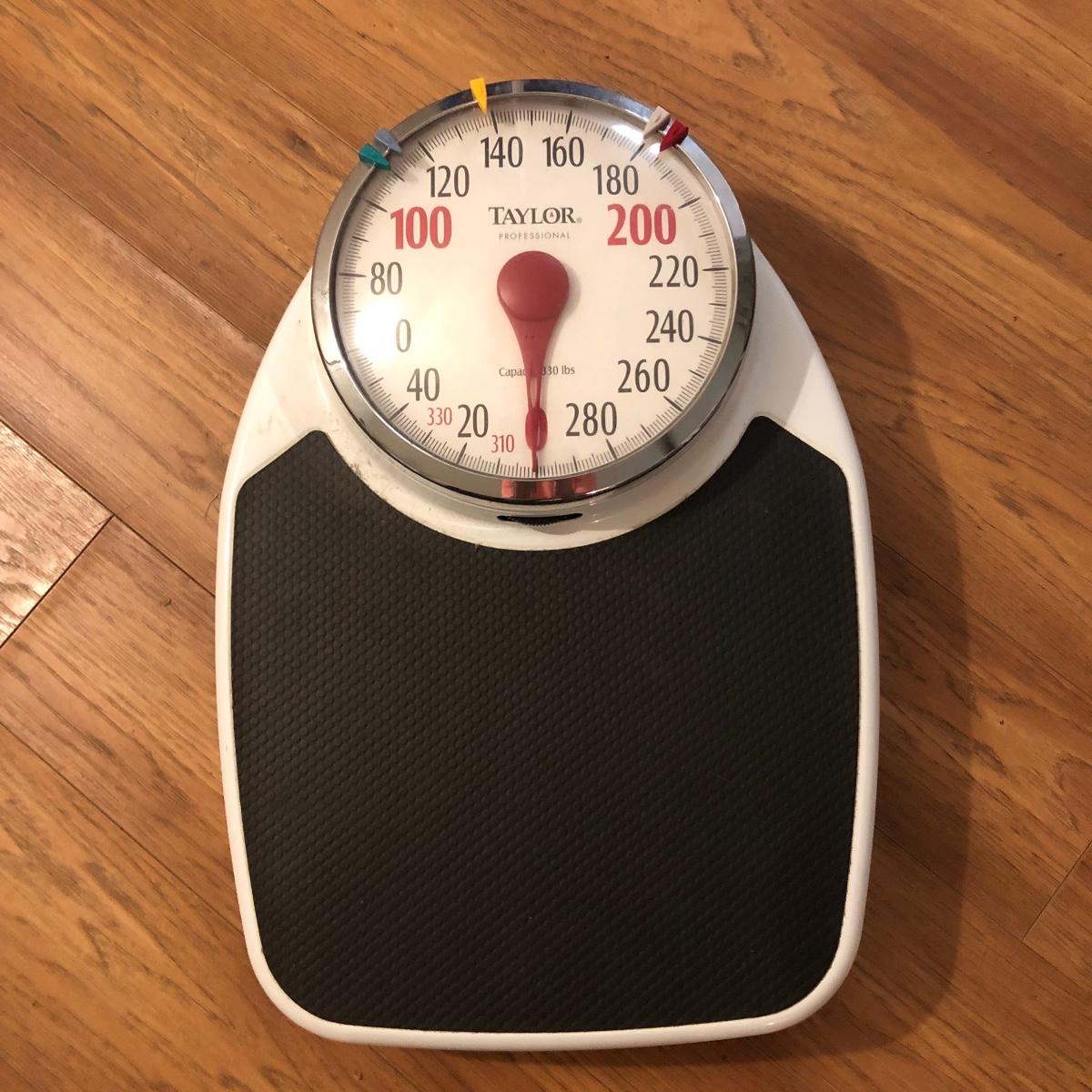 The scale’s needle moves freely when one stands on it. Max capacity is 330 pounds. Shipping Available.