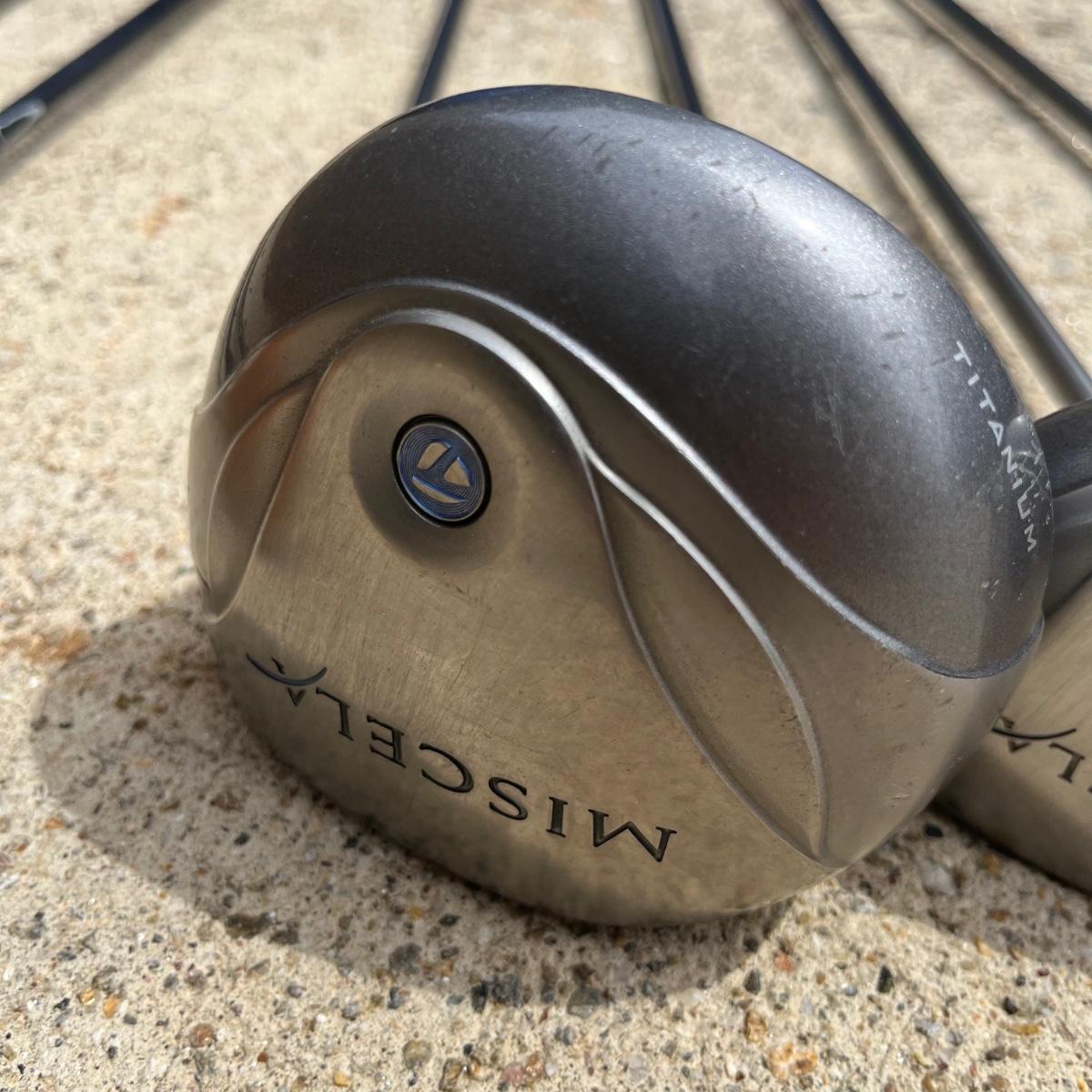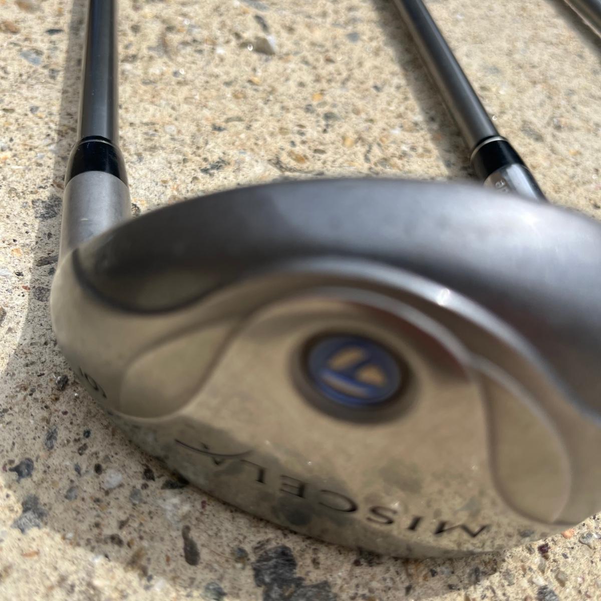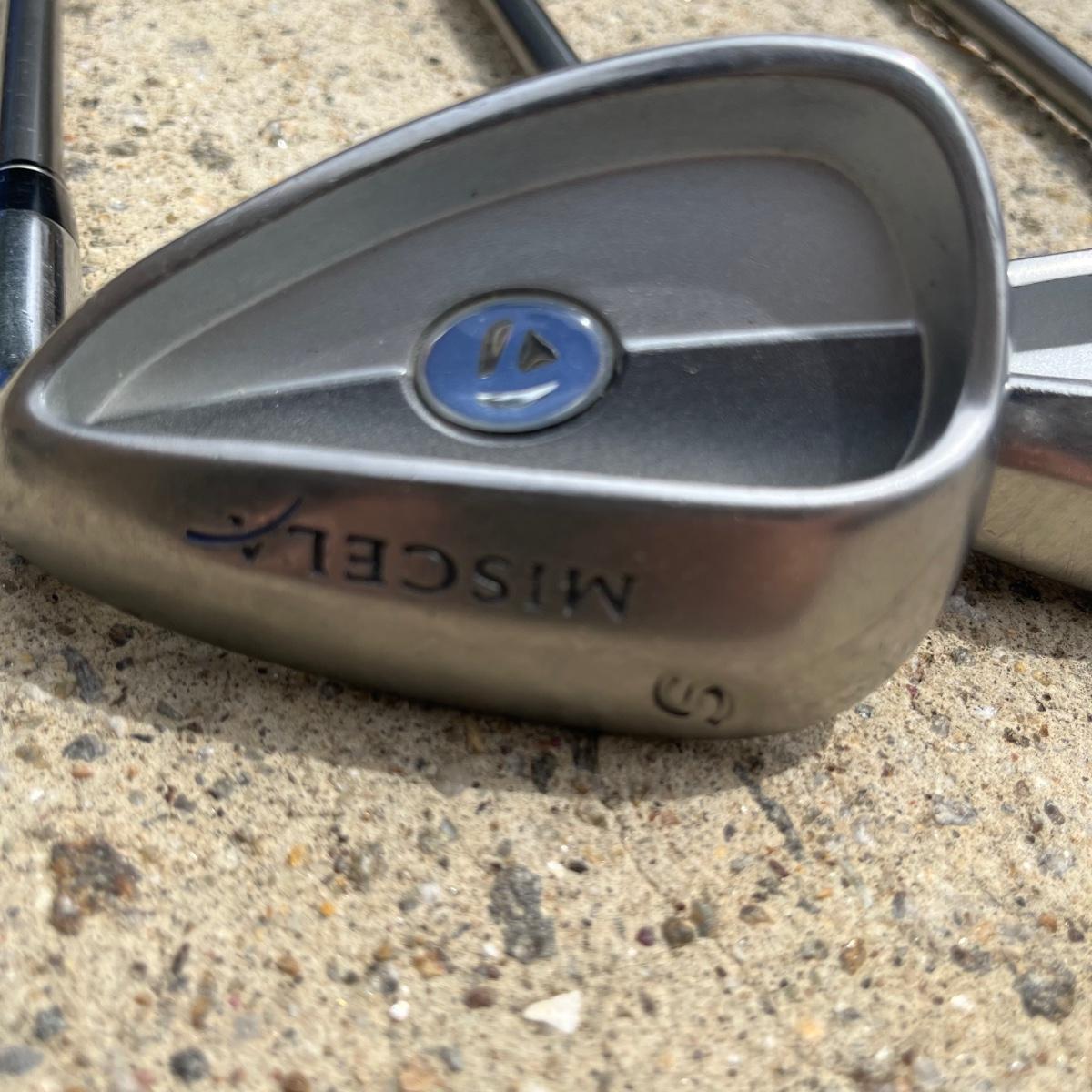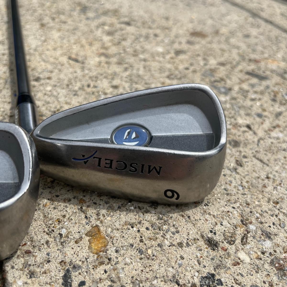 Lot includes ladies Miscela 7,8,9 irons and sand wedge, Miscela 1,3,5,6 woods, Taylor Made 5 wood , True Temper 7 wood, umbrella, ball pick up, bag and ball markers. Longest club measures 44” long.