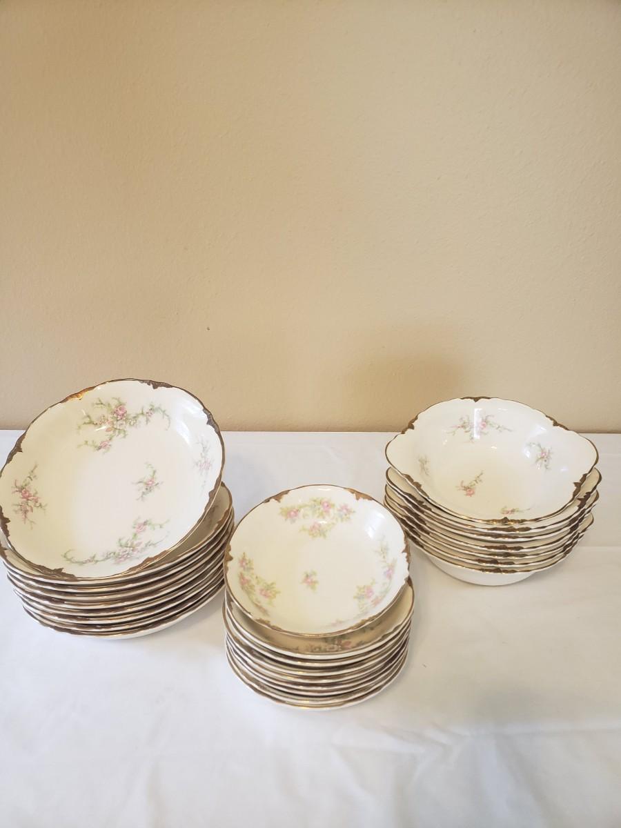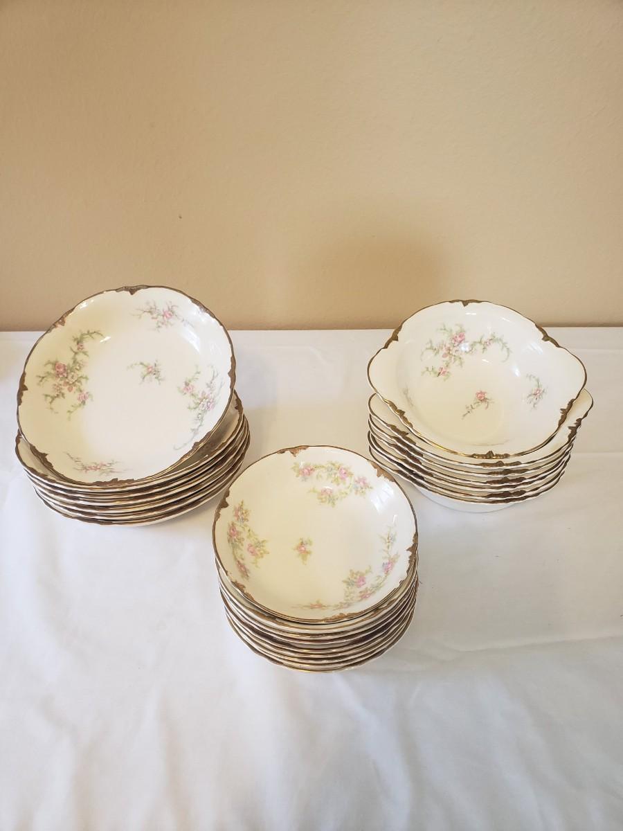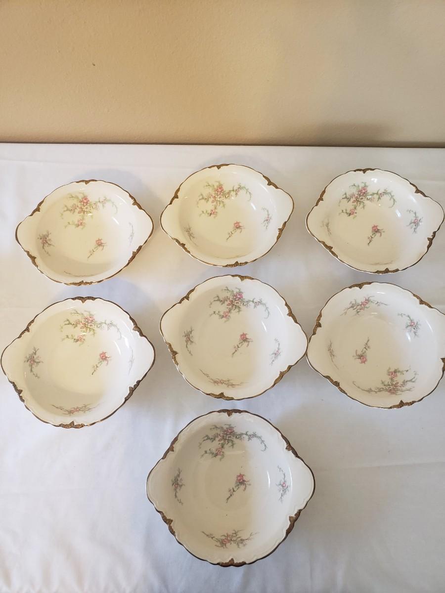 Taylor Smith China Co. "Taylor" pattern bowls. (7) 6"W doubled handled bowls; (8) 5.5"W bowls & (7) 7" W bowls.