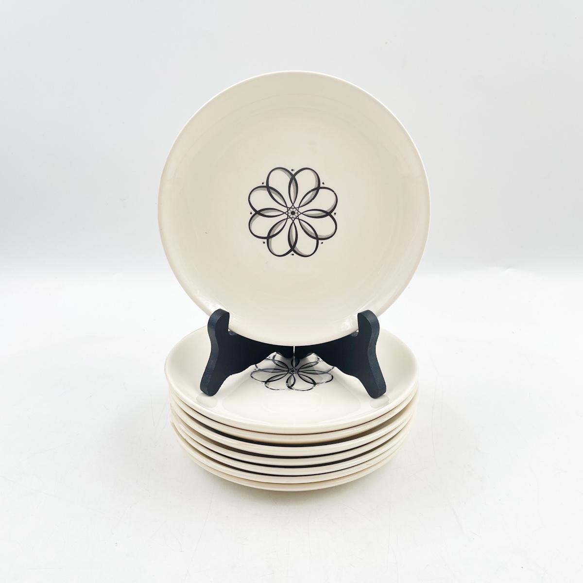 TAYLOR SMITH TAYLOR VERSATILE CHINA BLACK FLOWER 6” DESSERT PLATES (8)