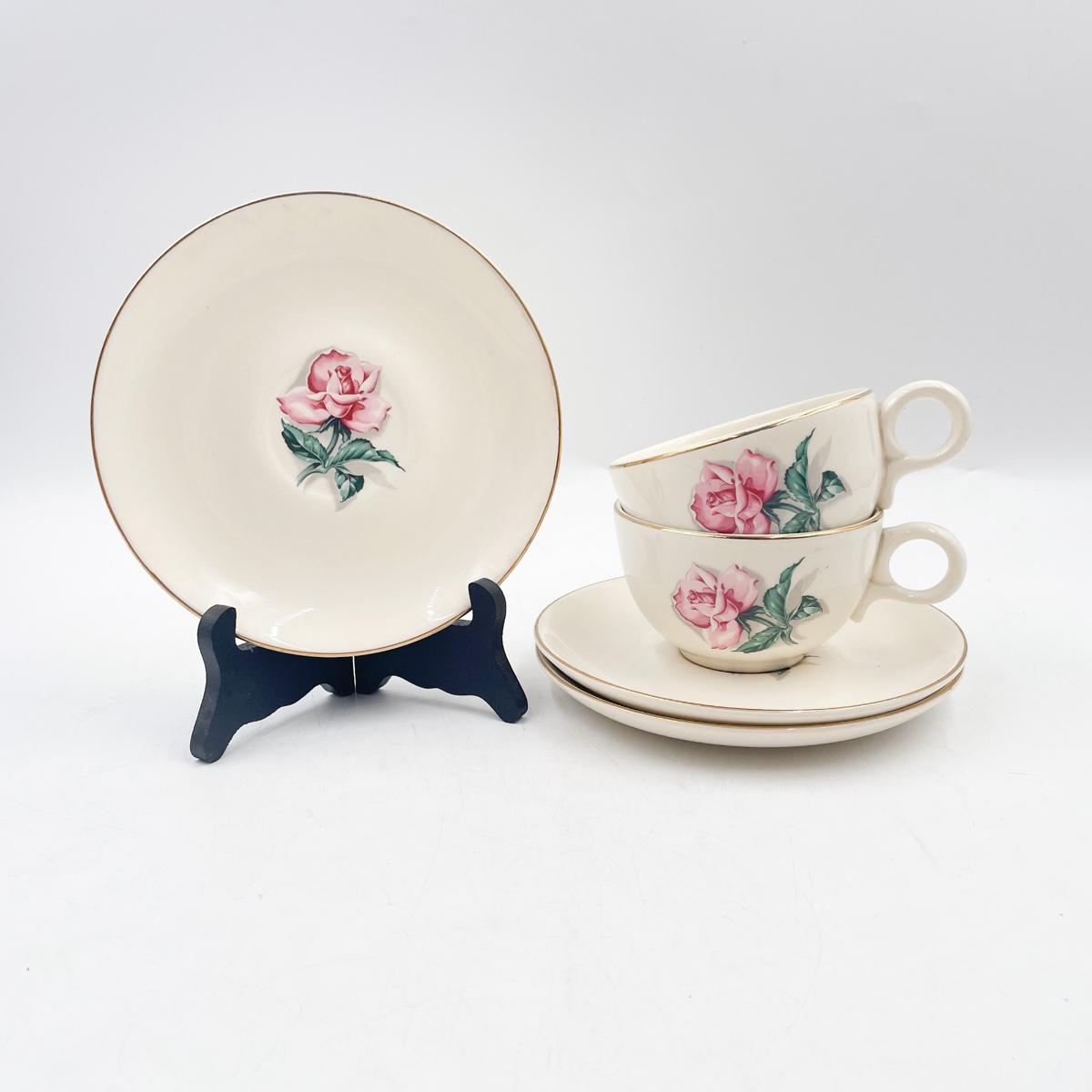 TAYLOR SMITH TAYLOR VERSATILE CHINA PINK ROSE TEACUPS (2) & SAUCERS (3)