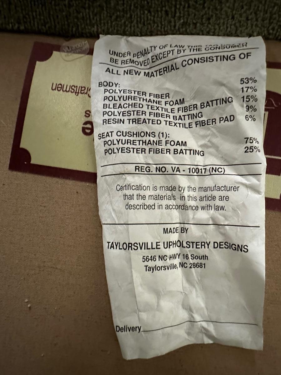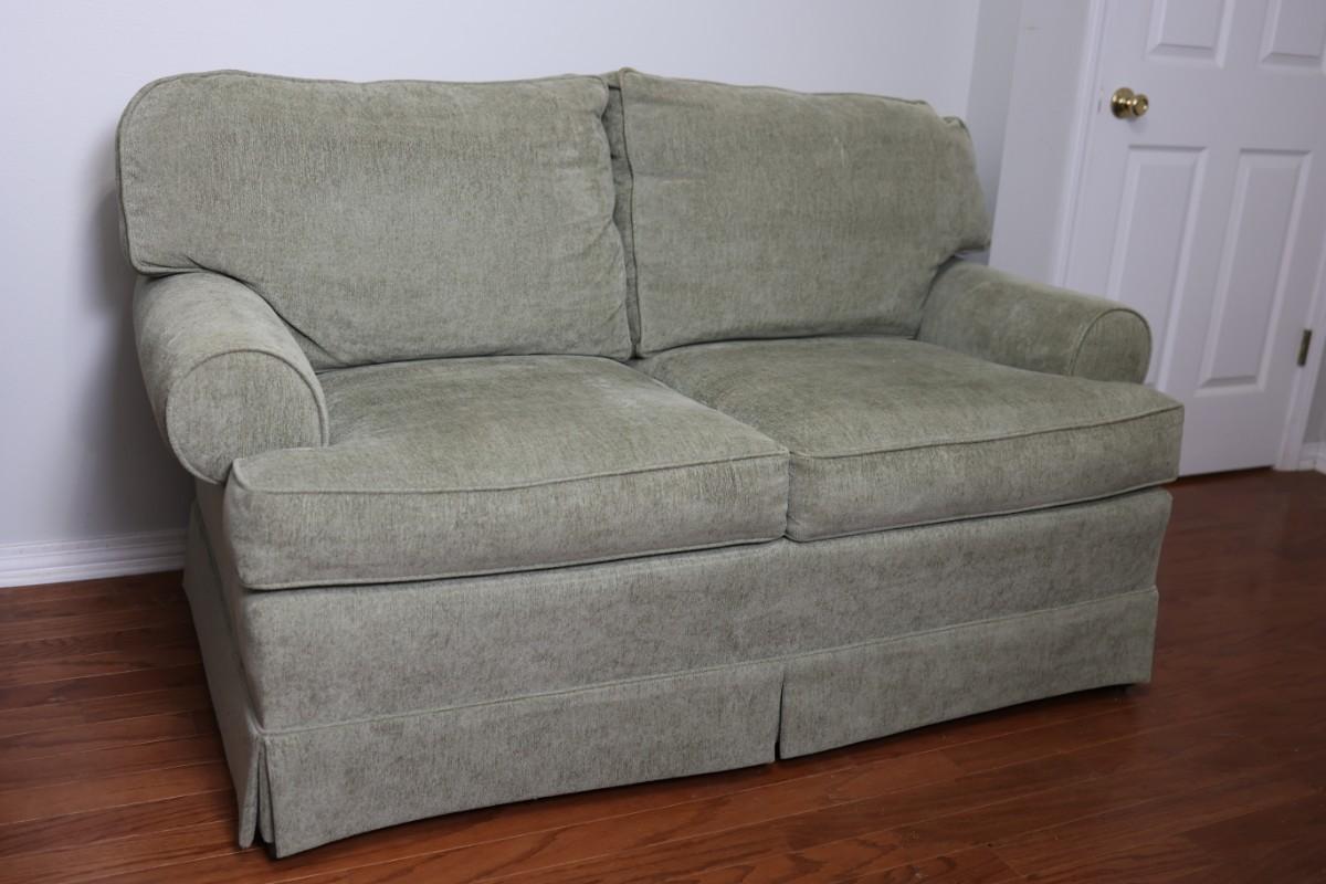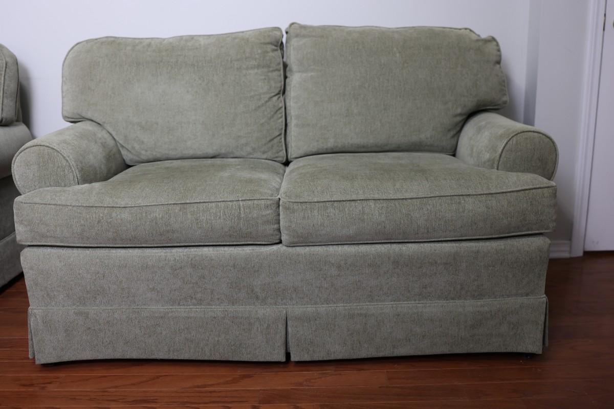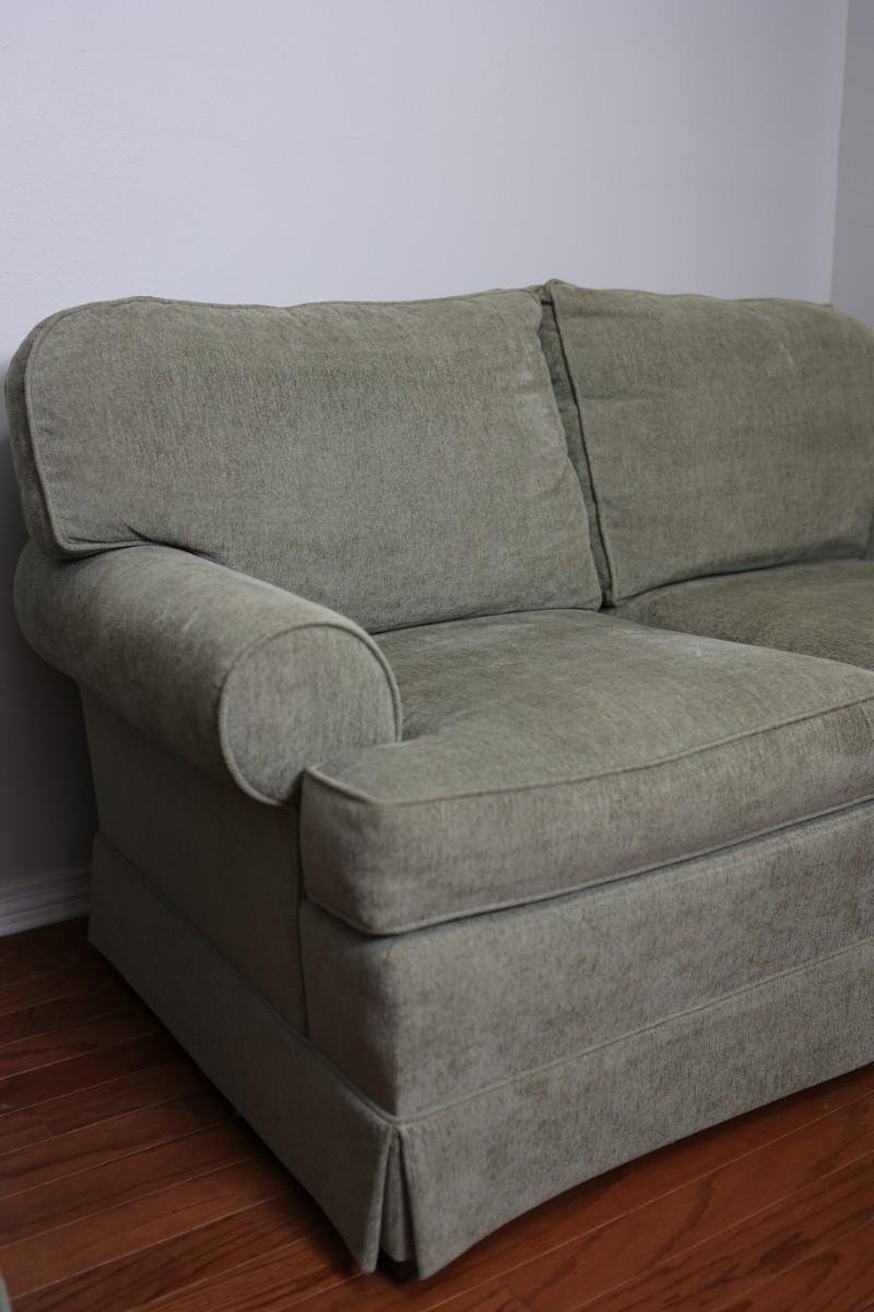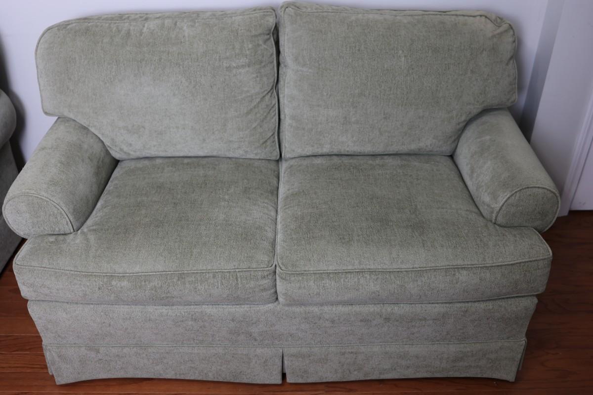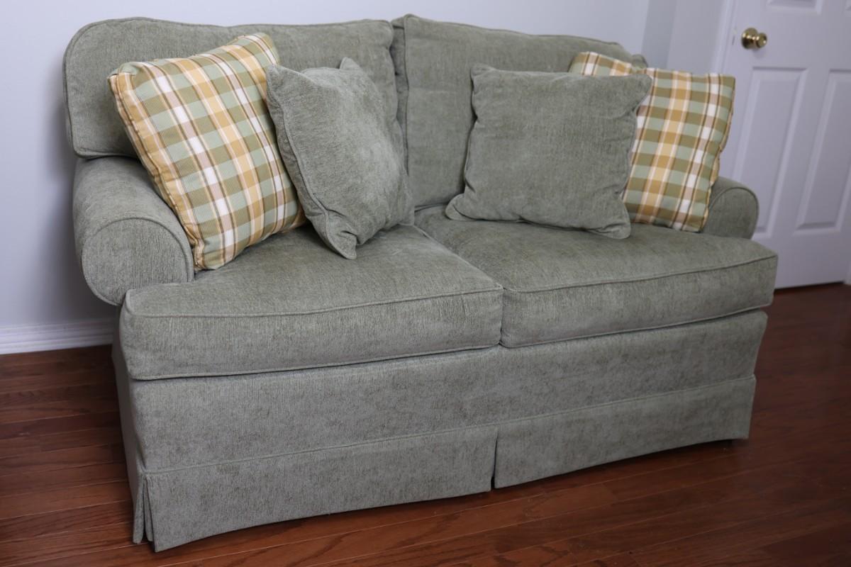 Please see discoloration behind the upper pillows. Besides that, the loveseat is in good condition.