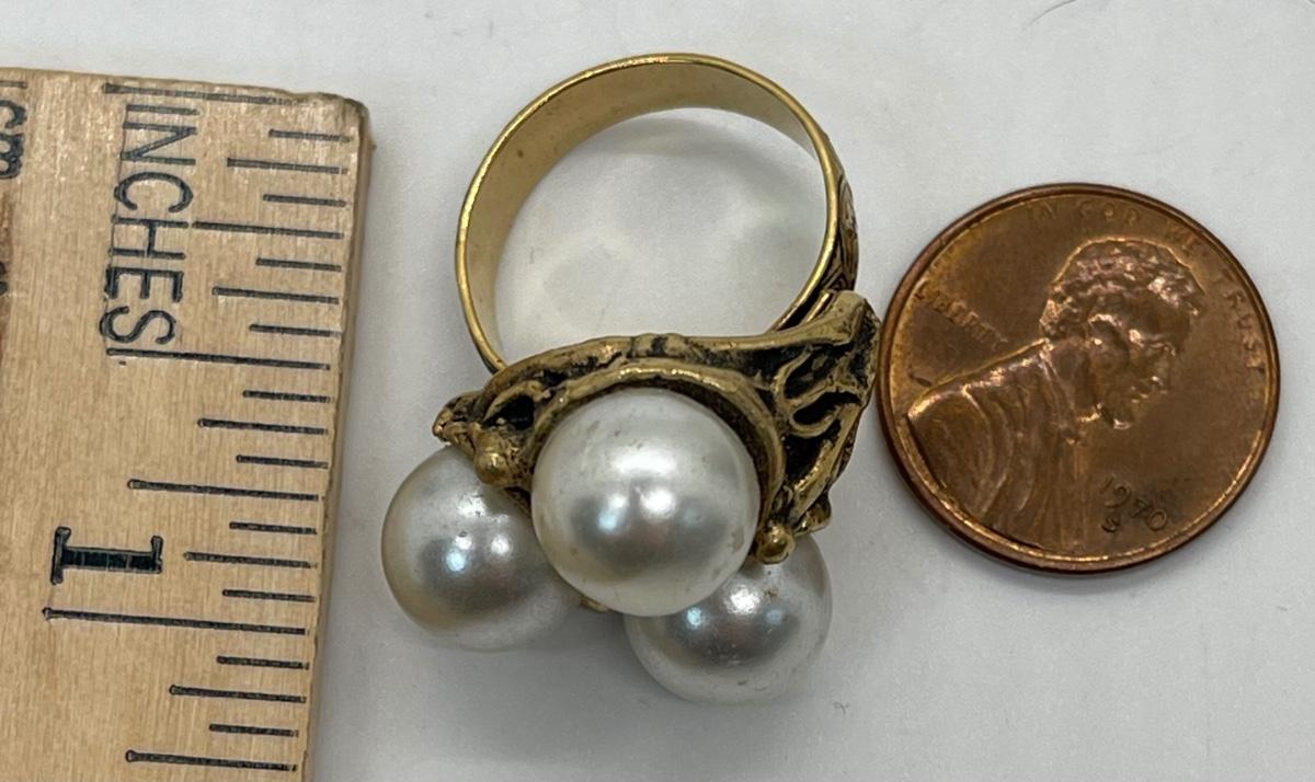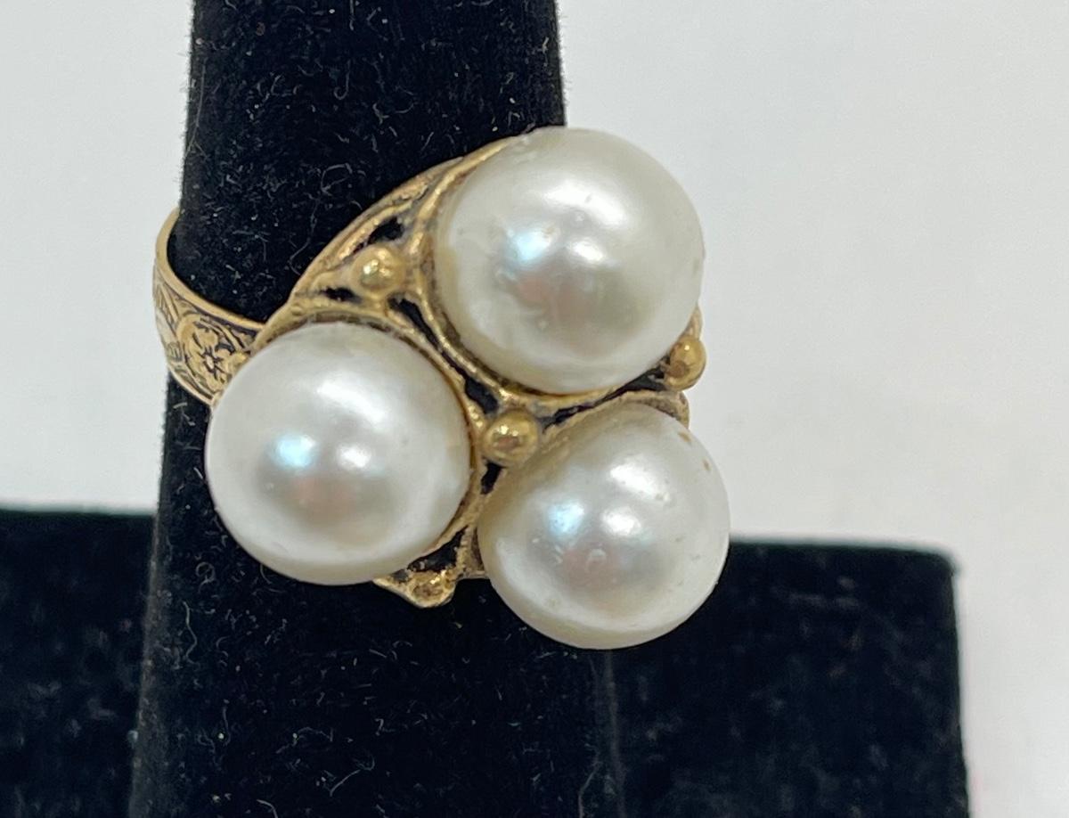 Costume Jewelry Fashion Ring Pearl with Gold tone