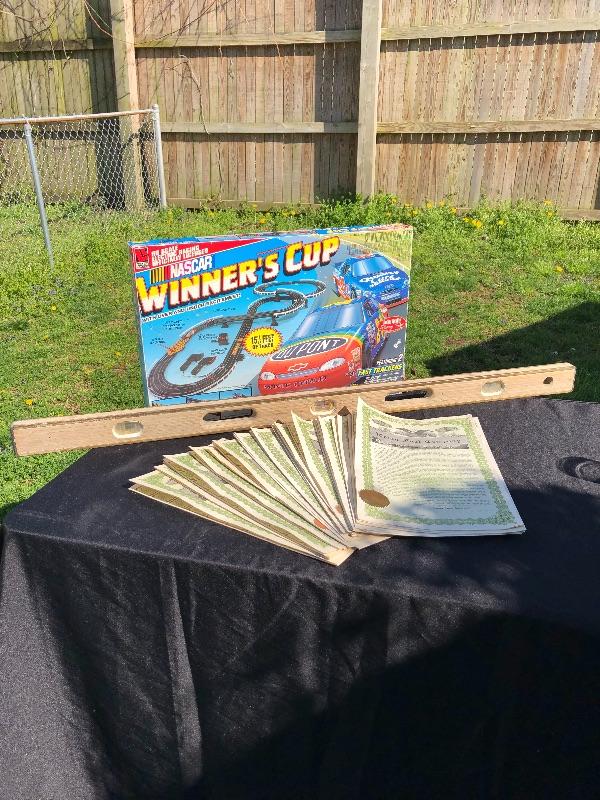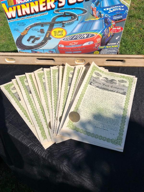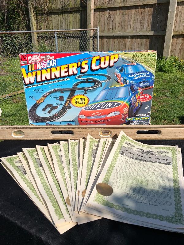 LOT 17 - Nascar Winner's Cup Electric Car, Antique Ruler, USA Mortgage Bonds