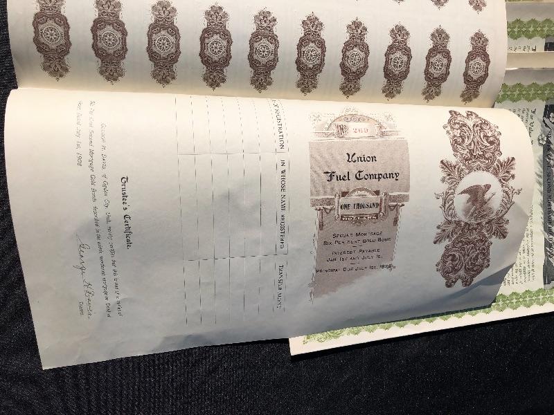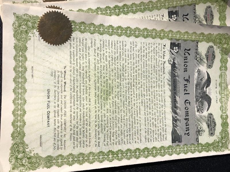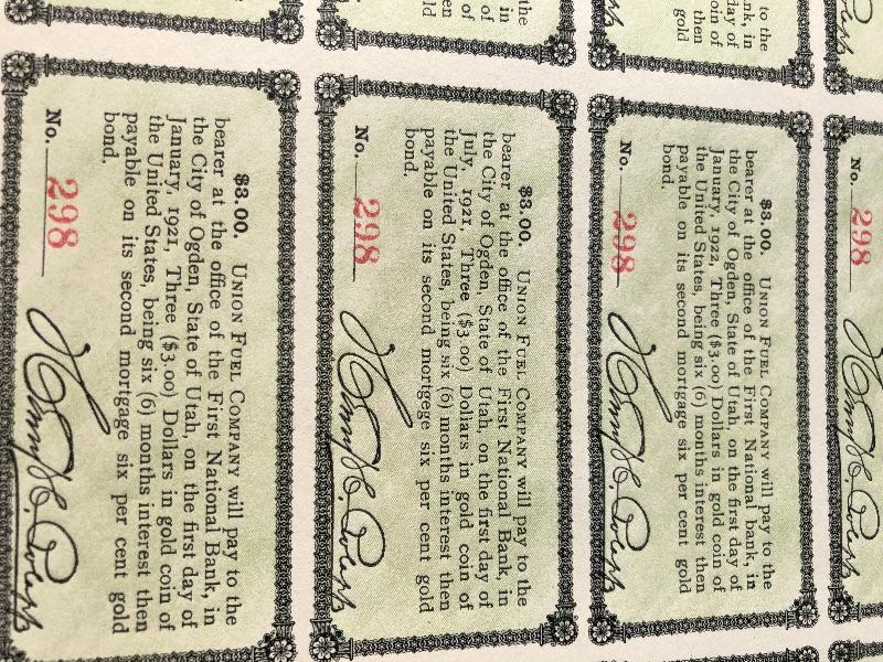 Collection of U.S.A. State of Utah Mortgage Bonds. Originals with Seal & Payment Slips
