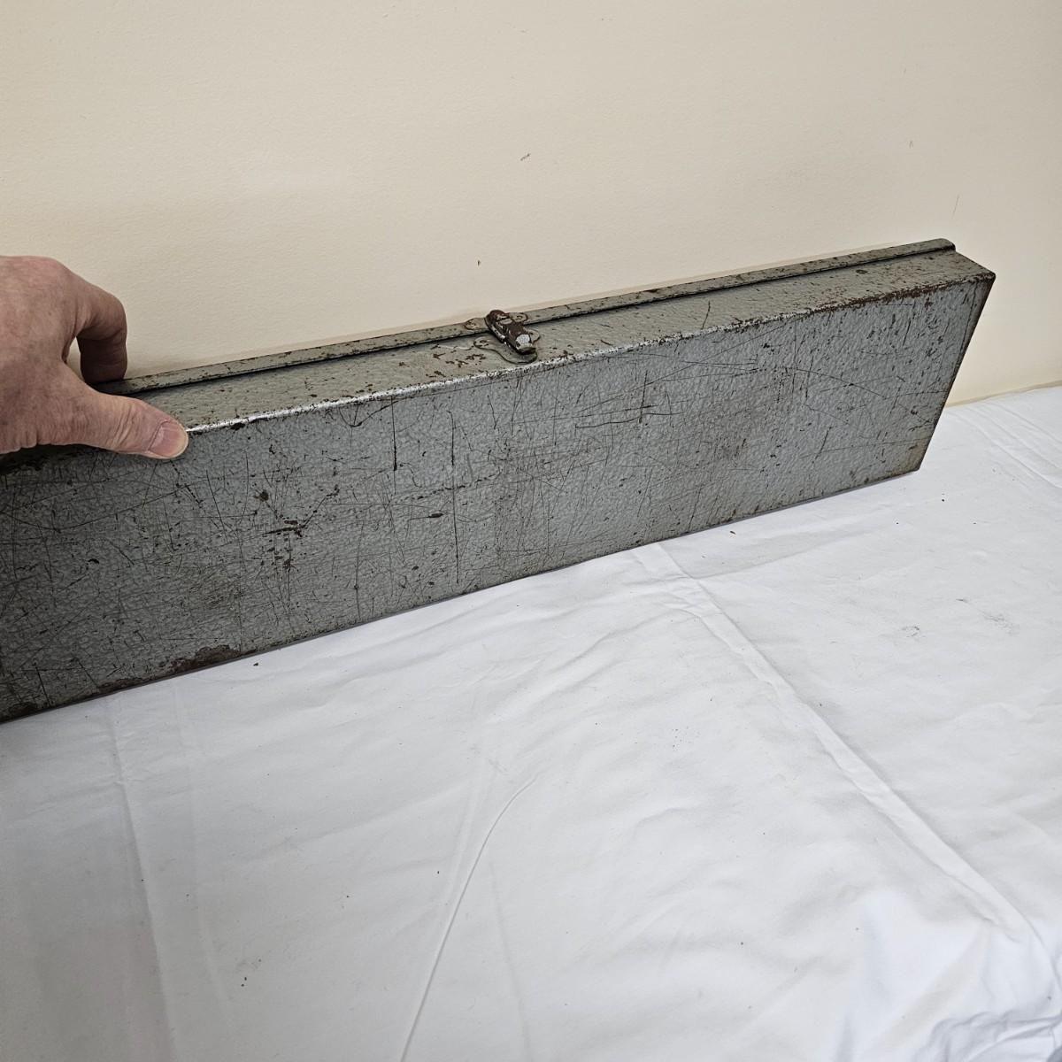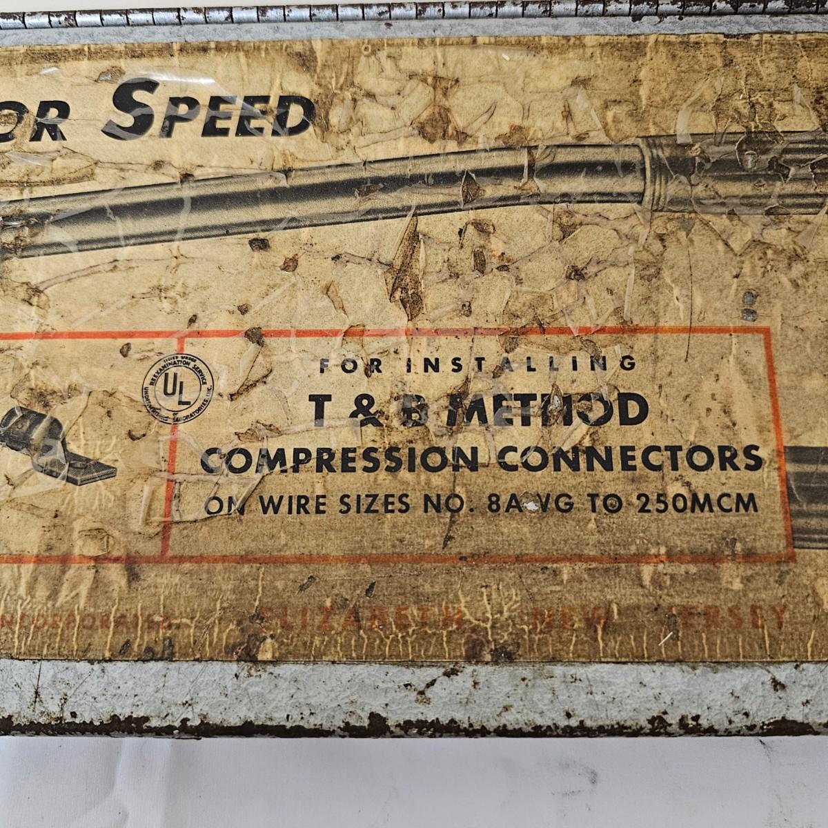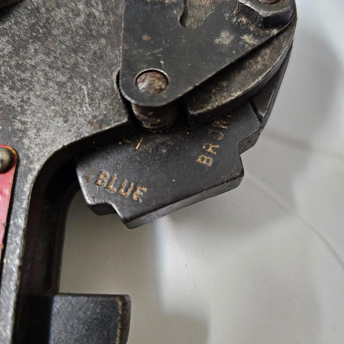 This massive crimping device is/was used to attach copper connectors to large gauge wire. In original steel case, this tool measures 25.5" x 6". Case is badly scarred and scratched from years of being tossed into vehicles but still holding together. See photos for details. Local pickup only.