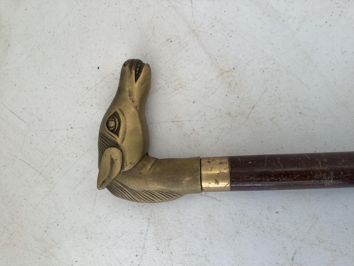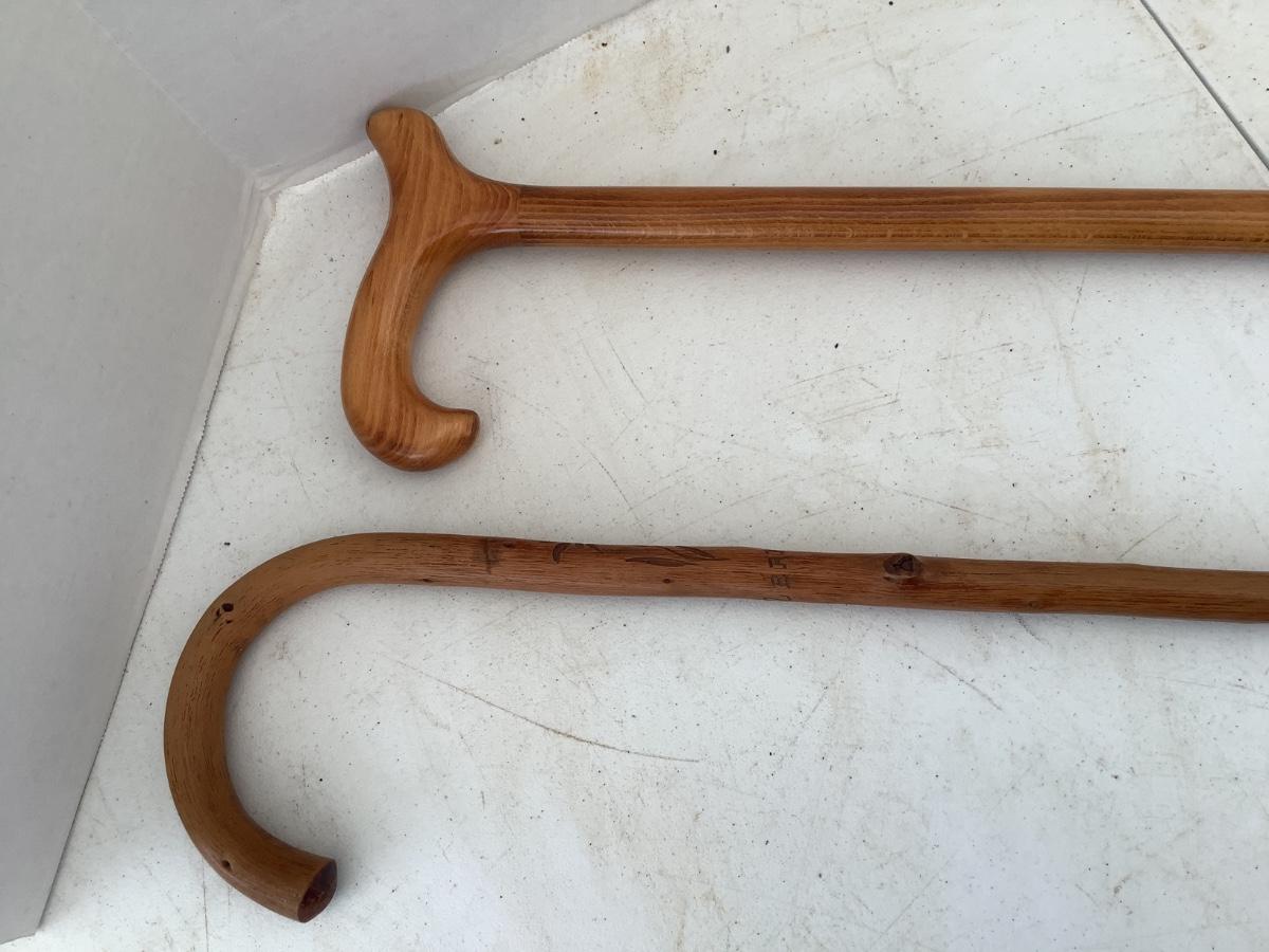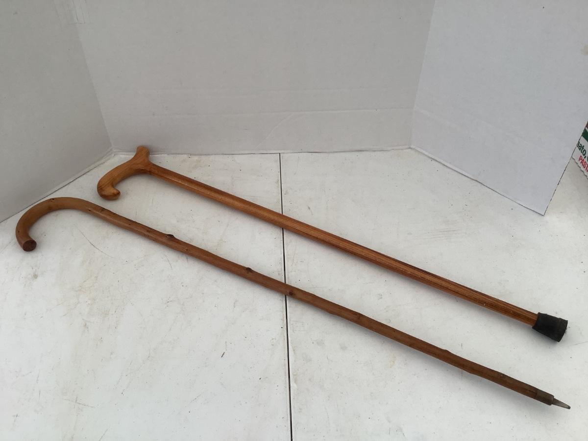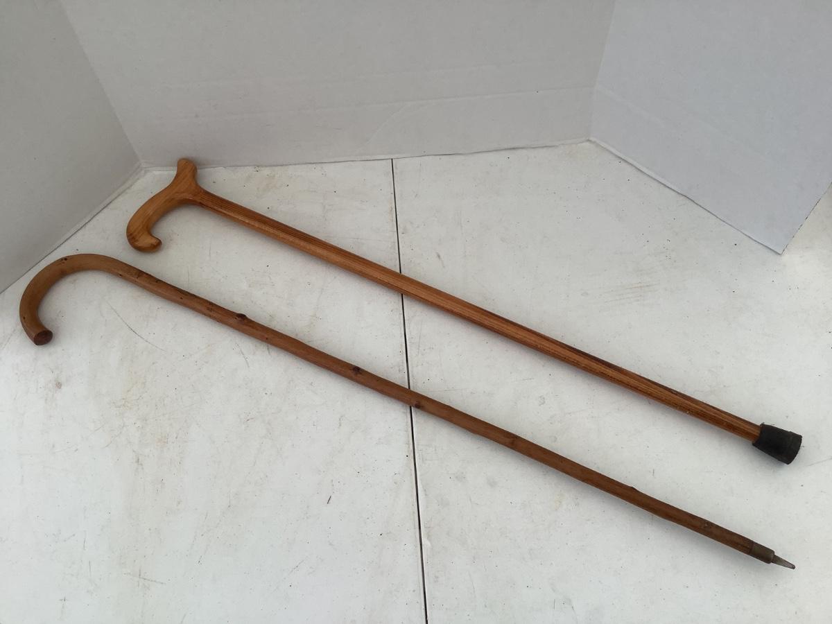 TC - 863  Three Vintage  Wooden Canes /Vintage  Brass Cane Stand