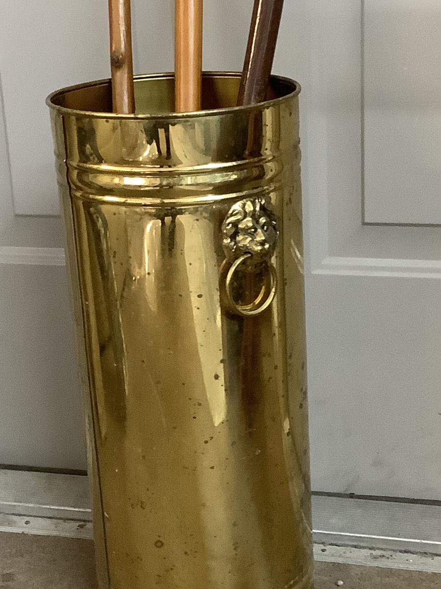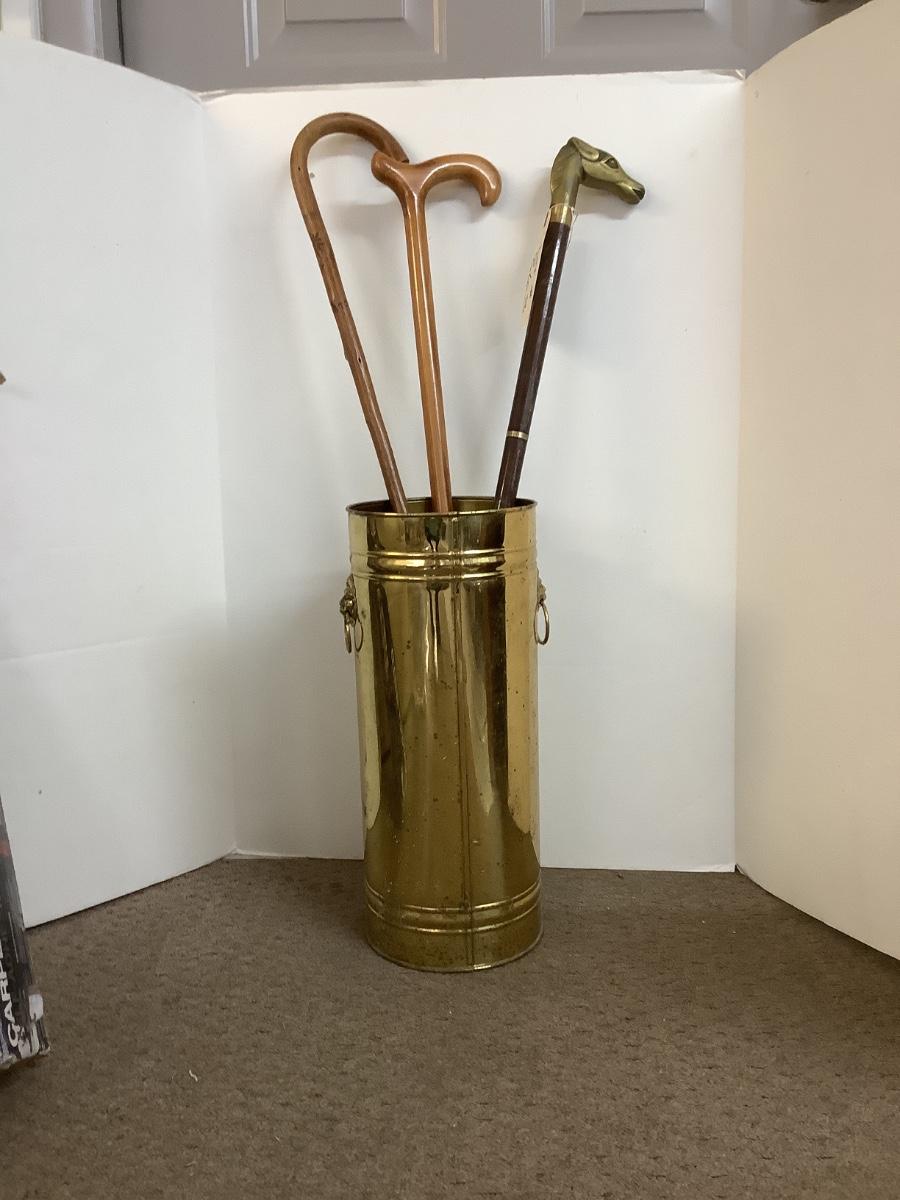 TC - 863 Three Vintage Wooden Canes /Vintage Brass Cane Stand