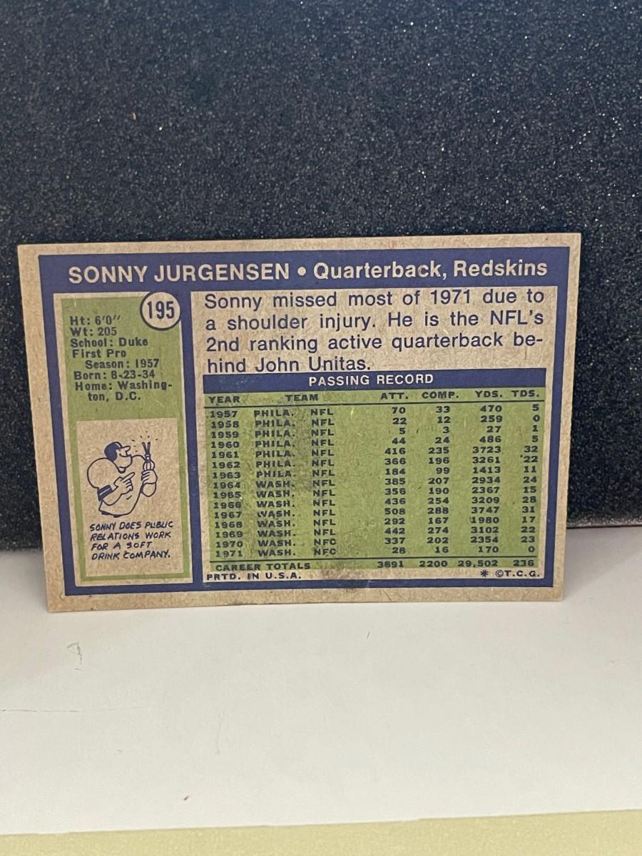 T.C.G #195 Sonny Jurgensen QB Redskins