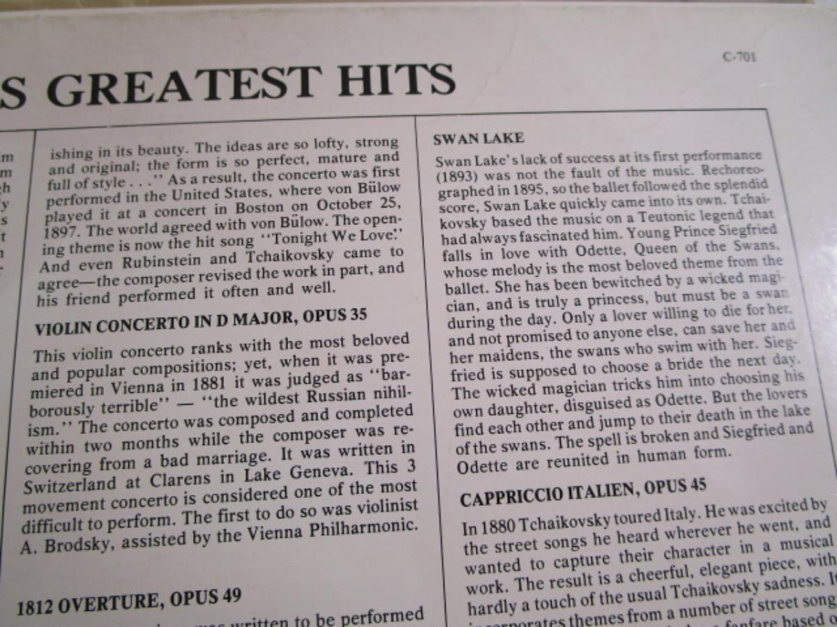 Tchaikovsky's Greatest Hits, 6-LP record set