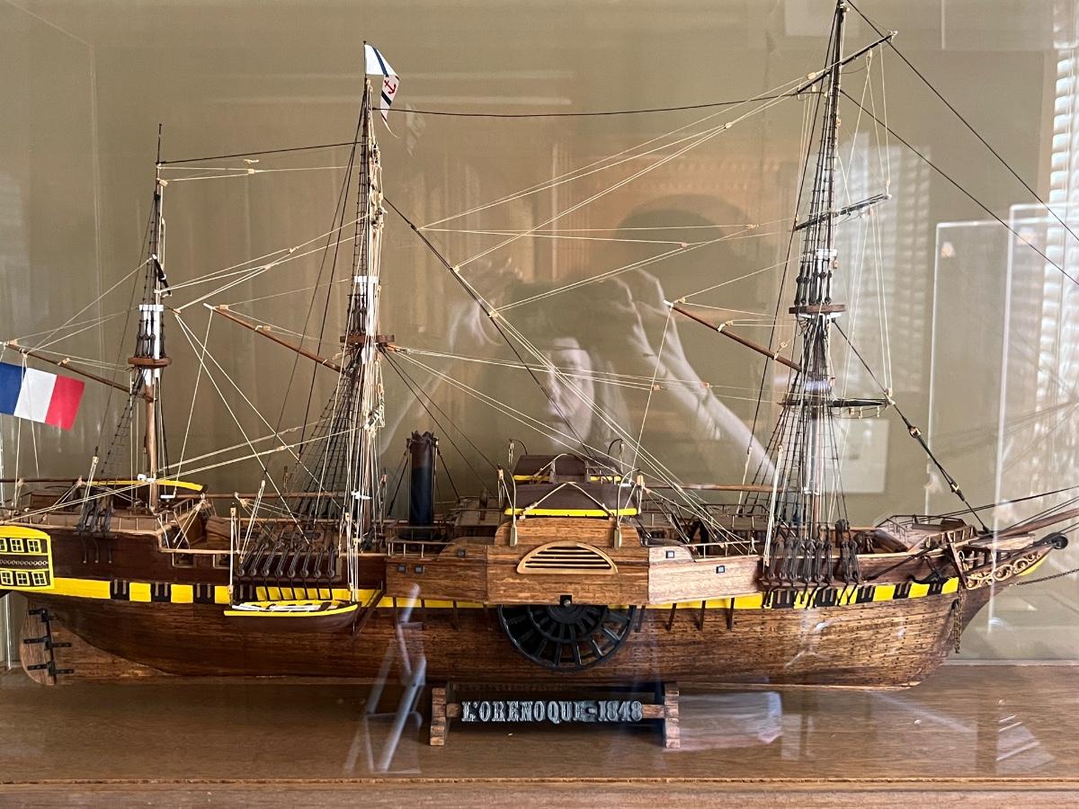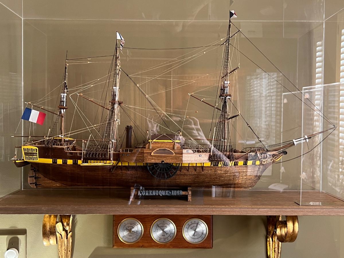 Handmade Ship Model of L’Orenoque 1848 w/ Display Case & Shelf