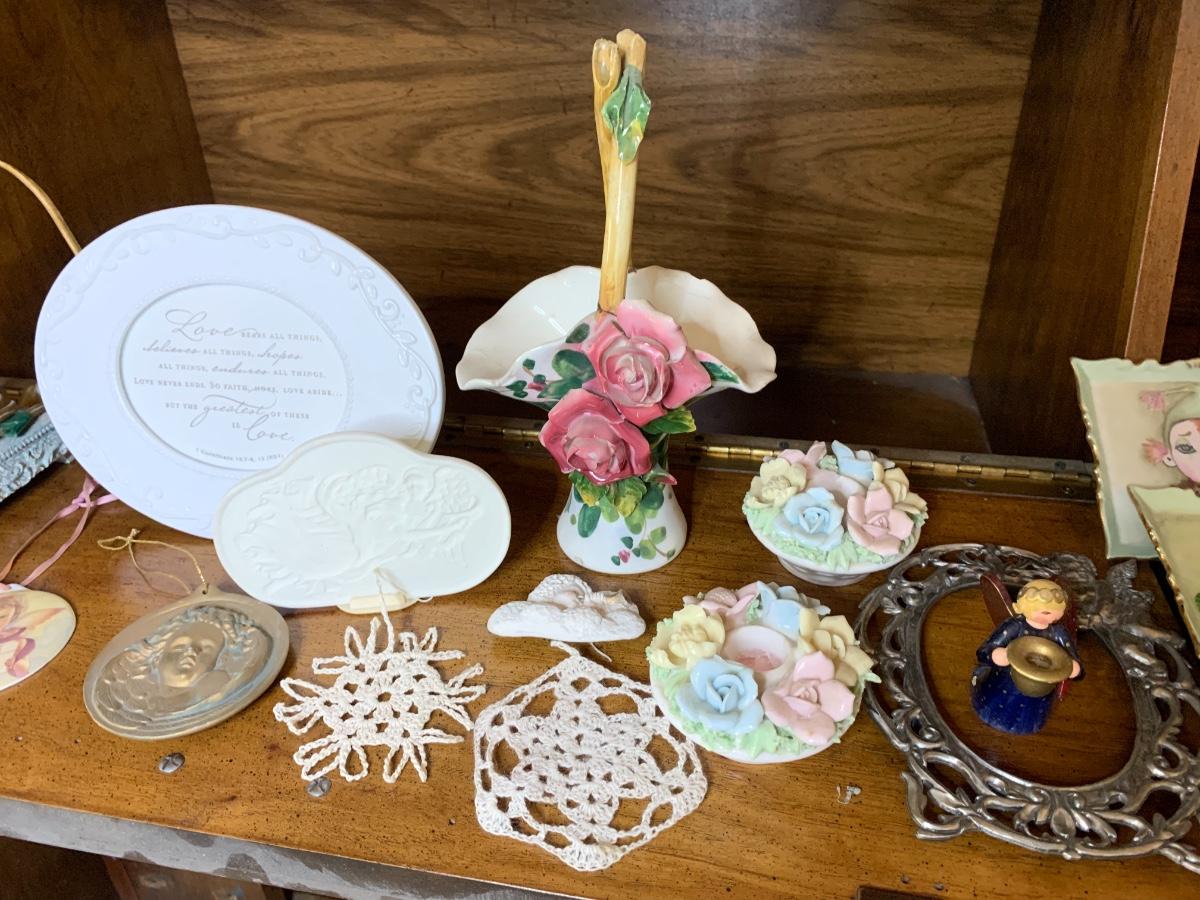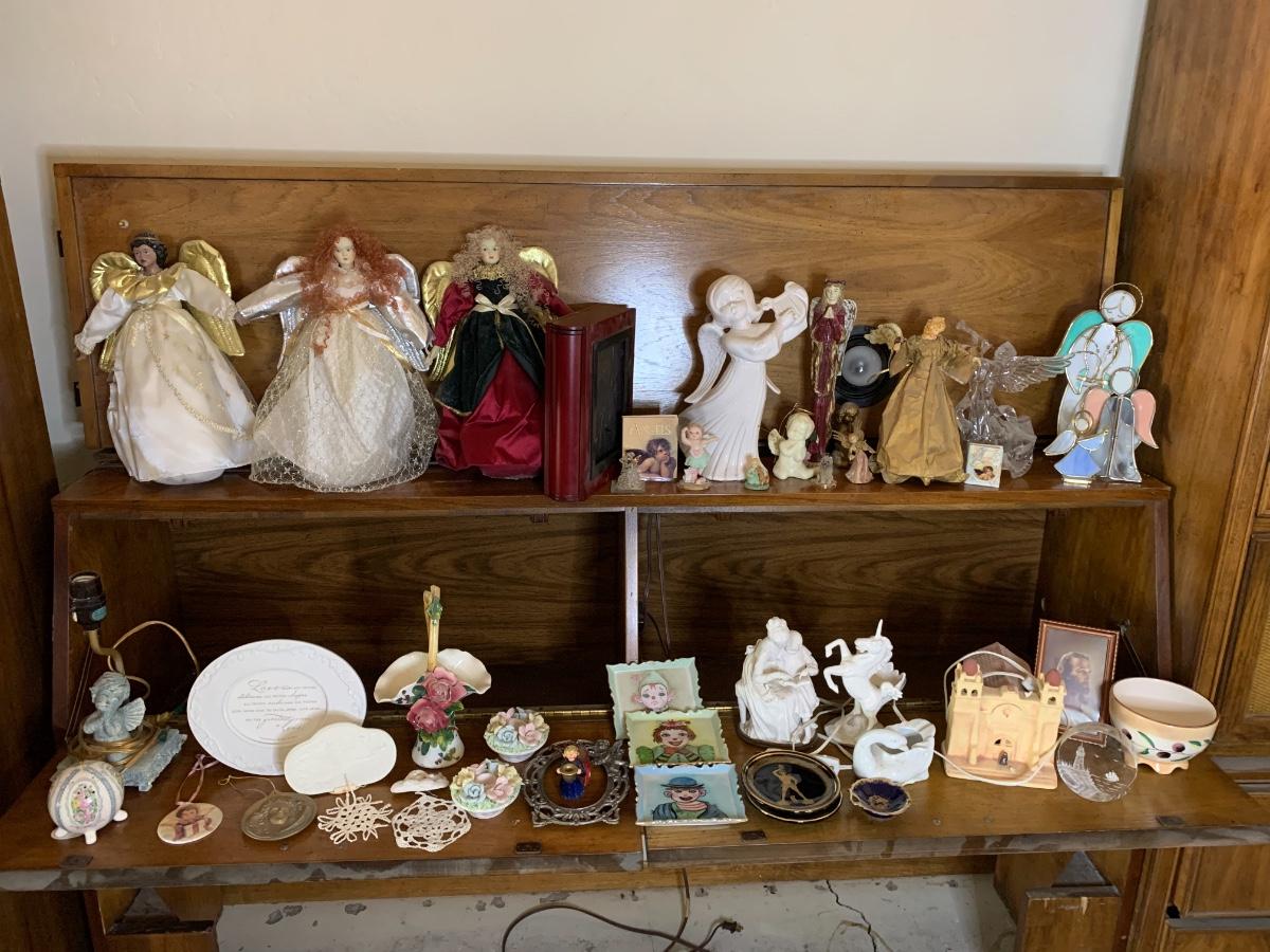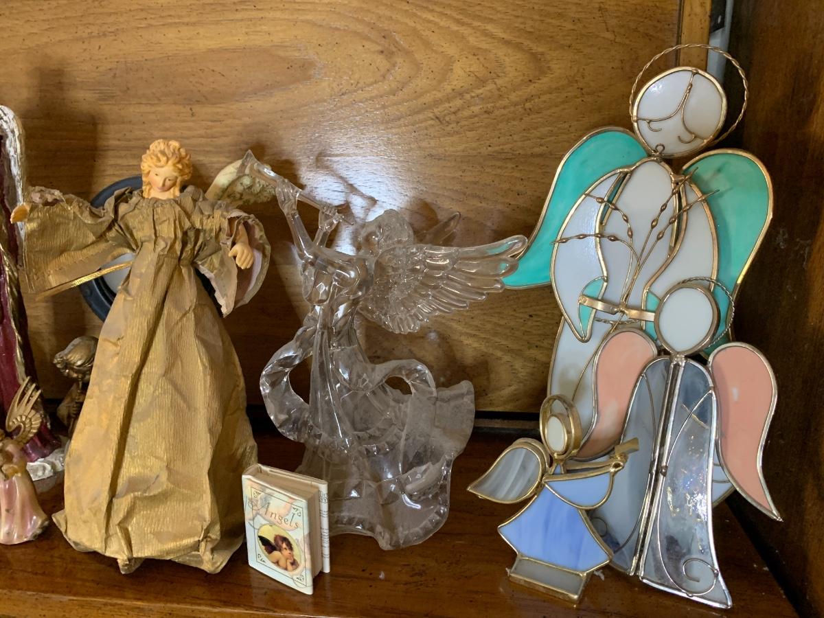 Lot includes a collection of collectibles including angels, clowns, flowers, unicorn, spiritual items, stained glass and more.