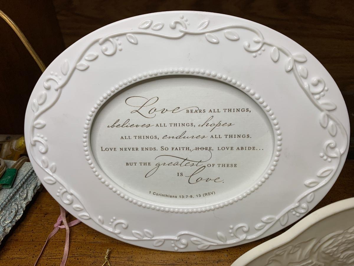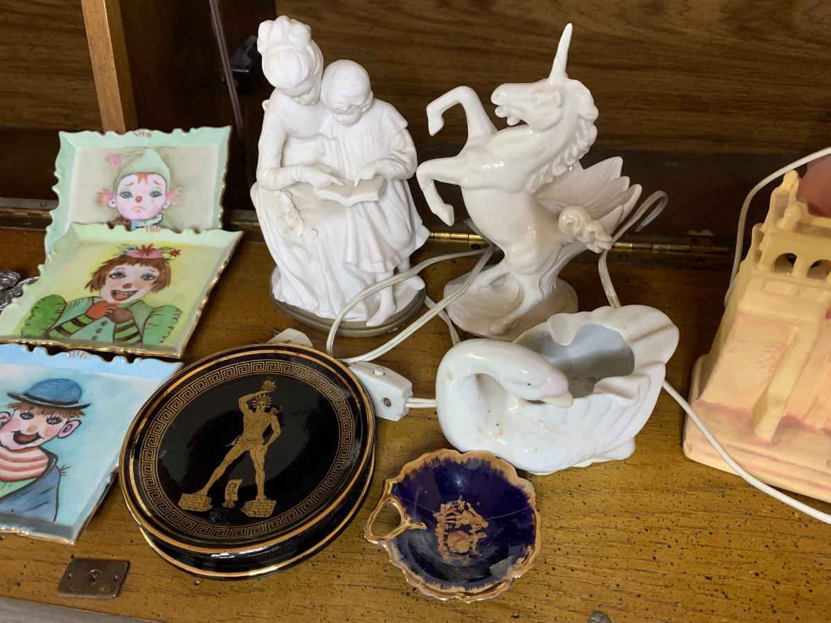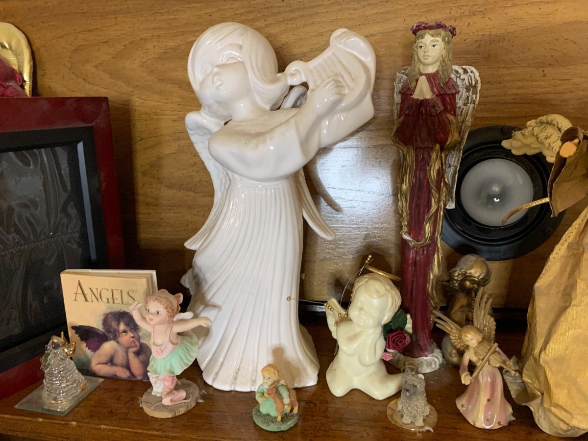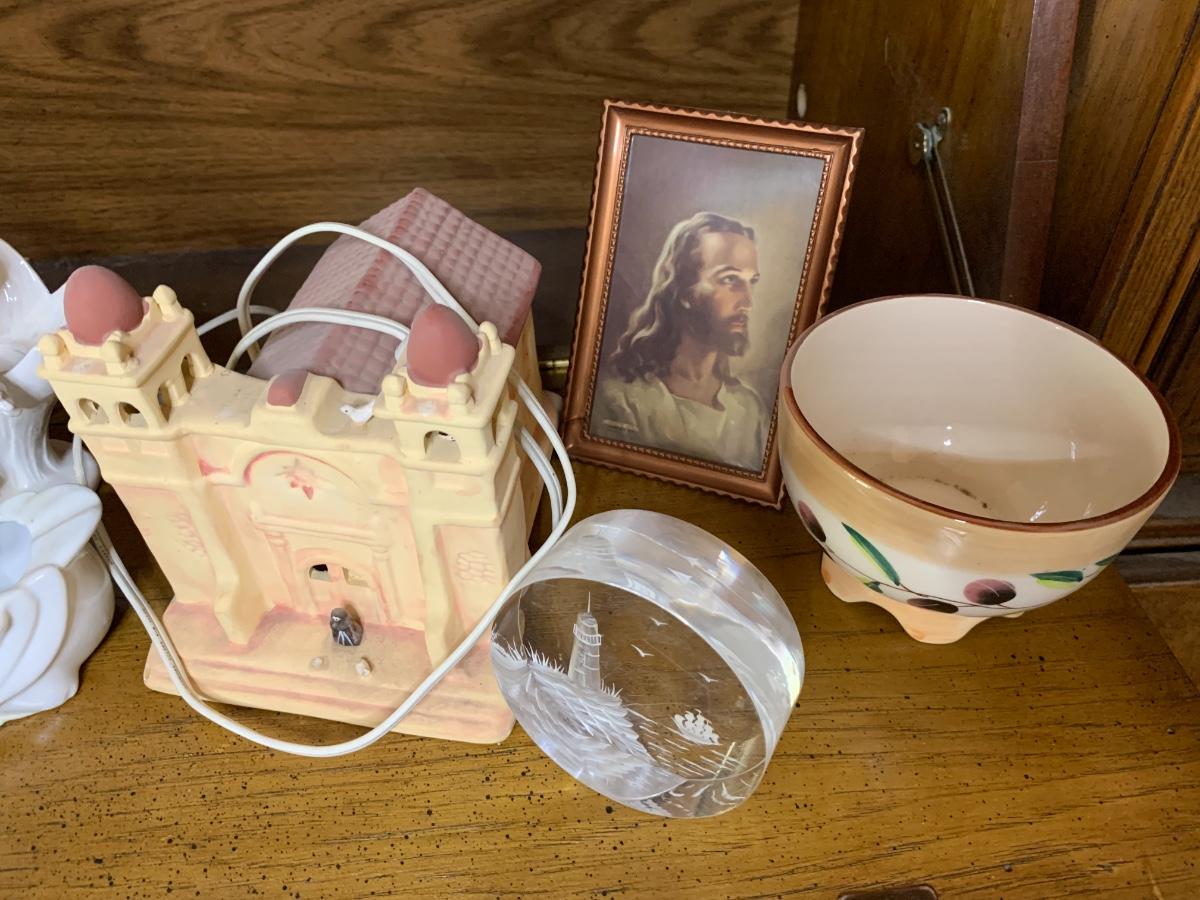 Lot includes a collection of collectibles including angels, clowns, flowers, unicorn, spiritual items, stained glass and more.