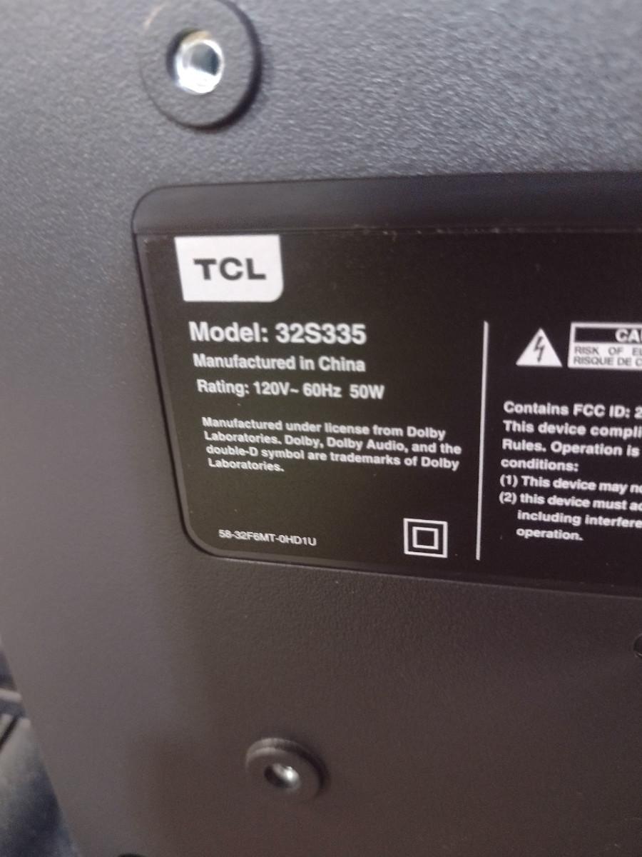 TCL Roku TV Flat Screen Television- Approx 31"- Item is in Working Condition- Model 32S335