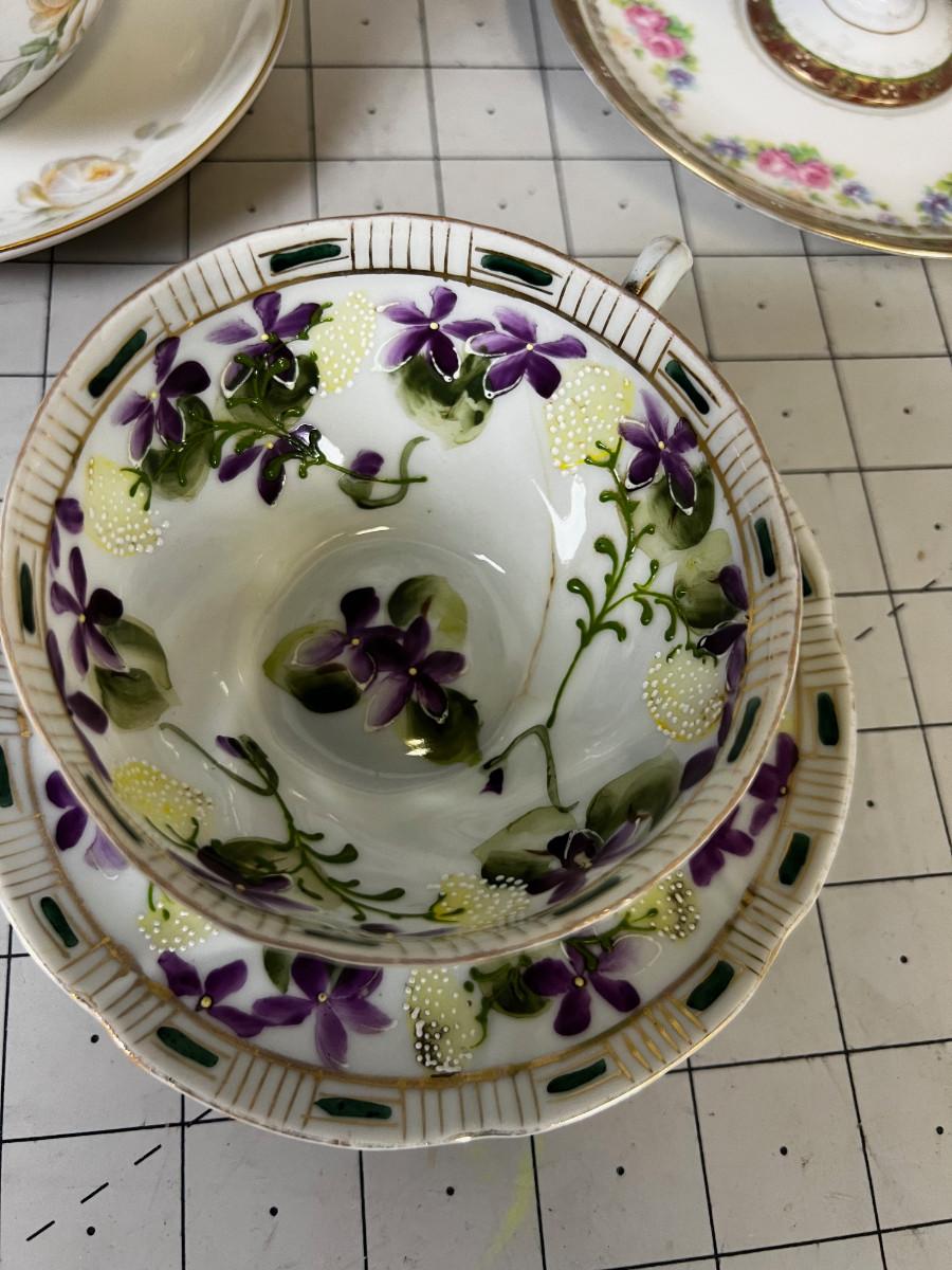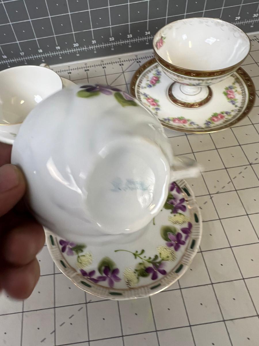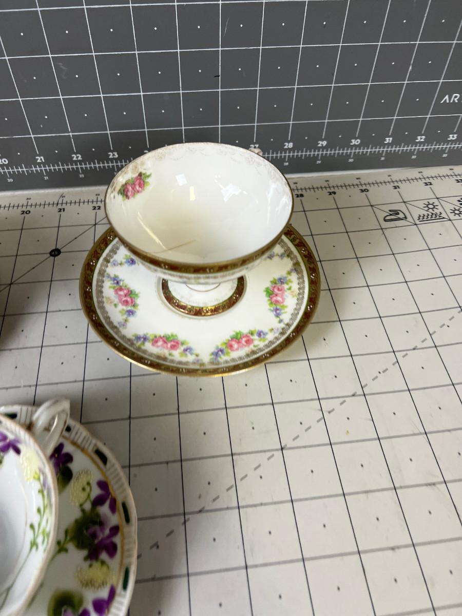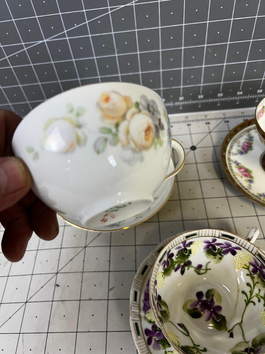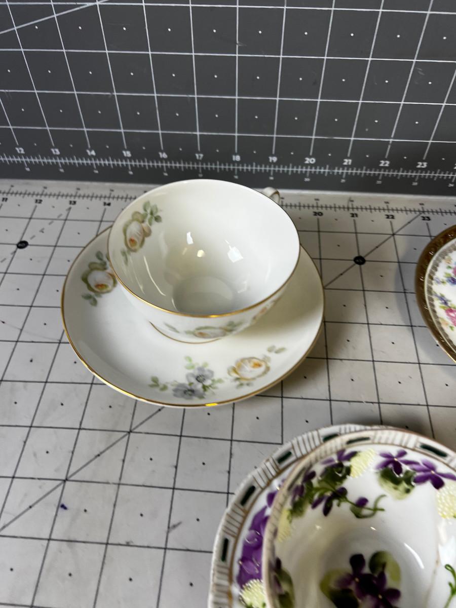 Antique Cups and Saucers. Some have cracks. But still lovely