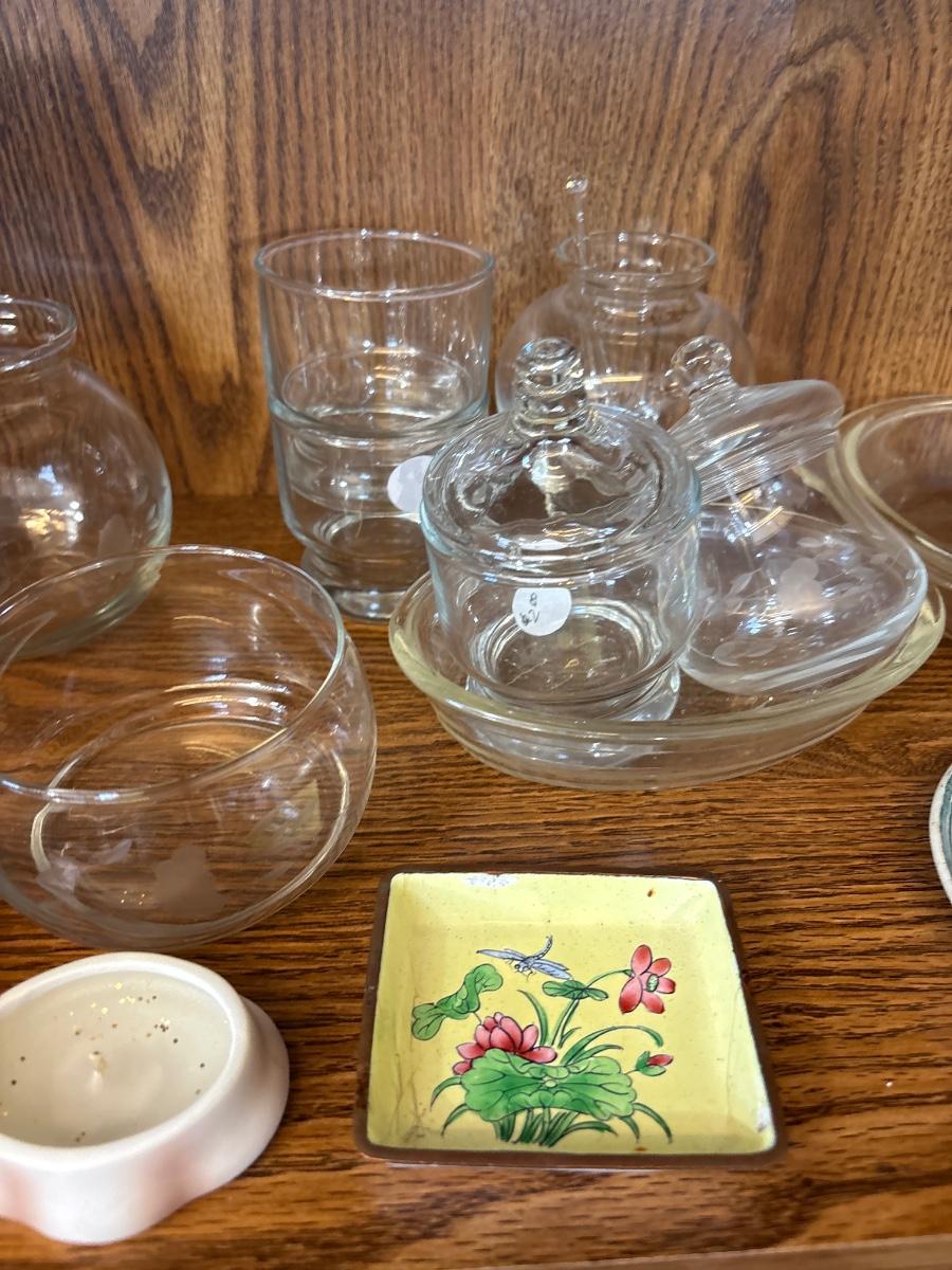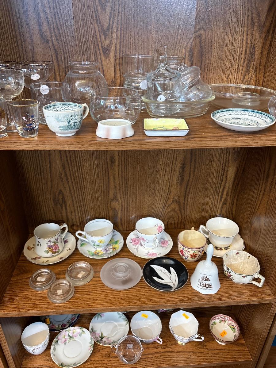 Tea cups, and glassware