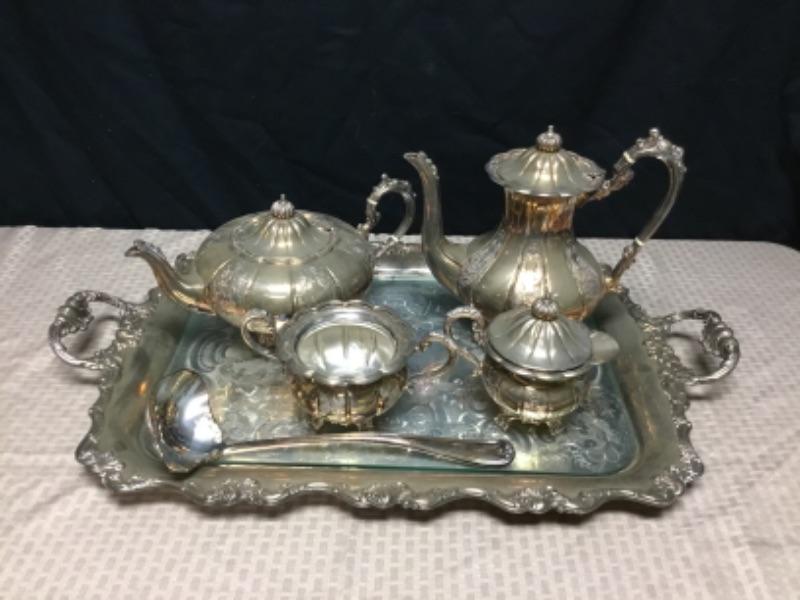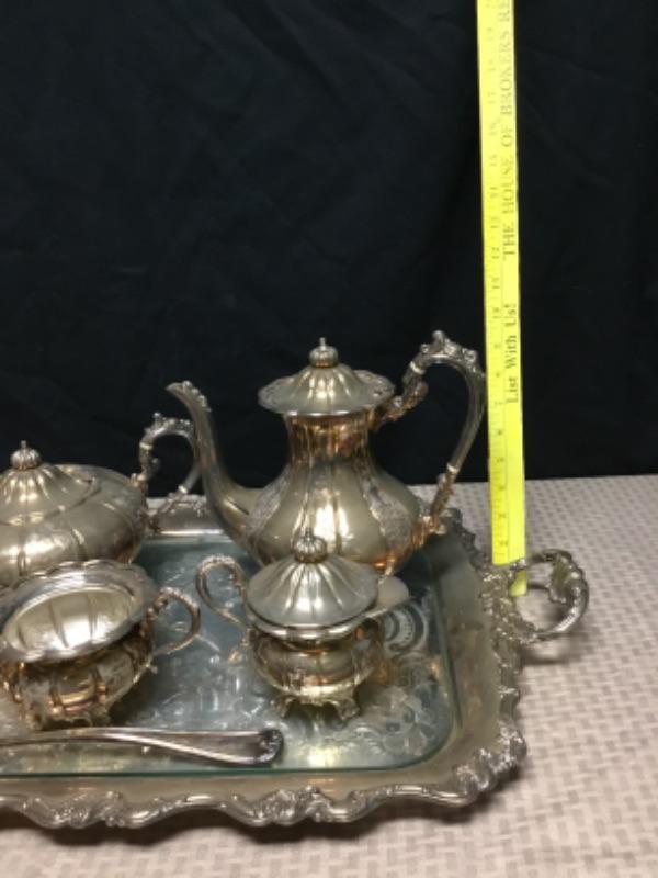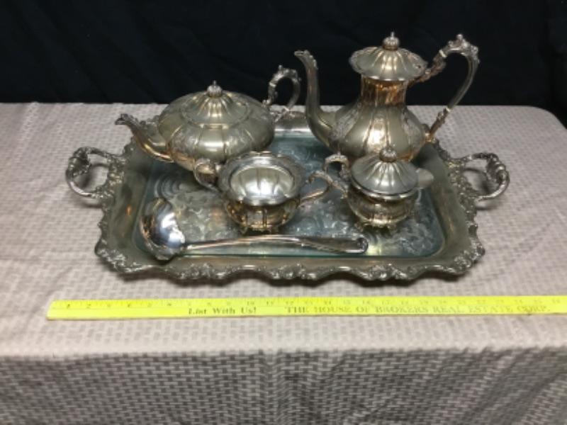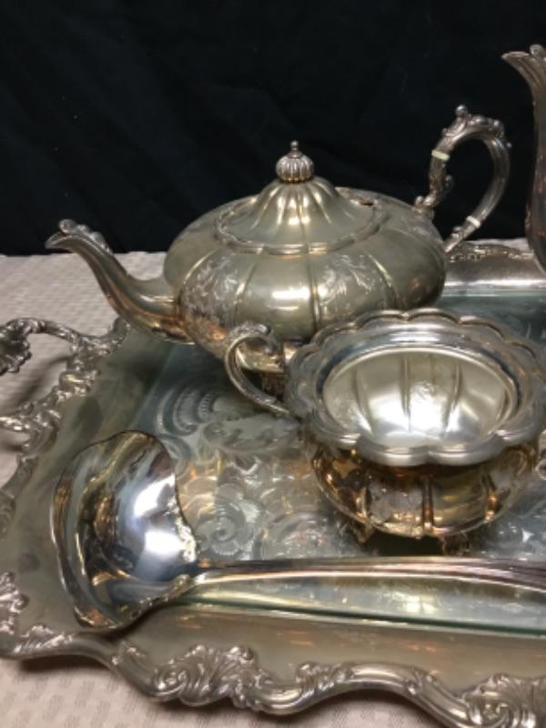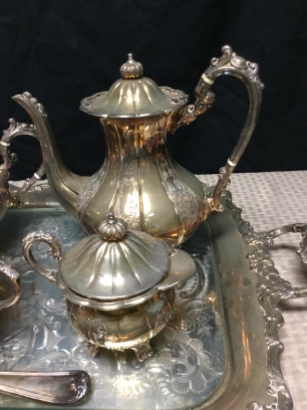 6 piece Silverplate tea set. Includes everything photo'd.