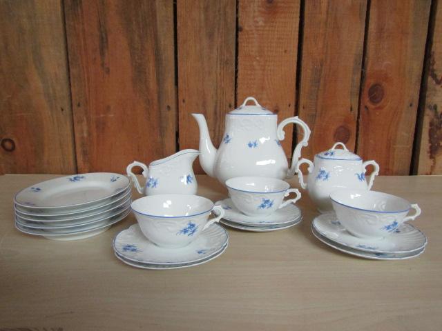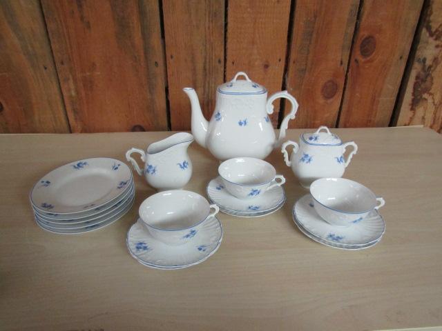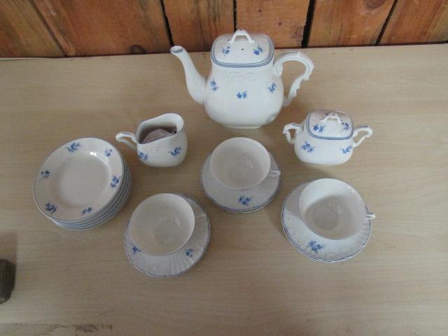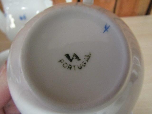 Tea Set Made in Portugal (Pot, Creamer, Sugar, 3 Cups & Saucers, 5- 6" Plates)