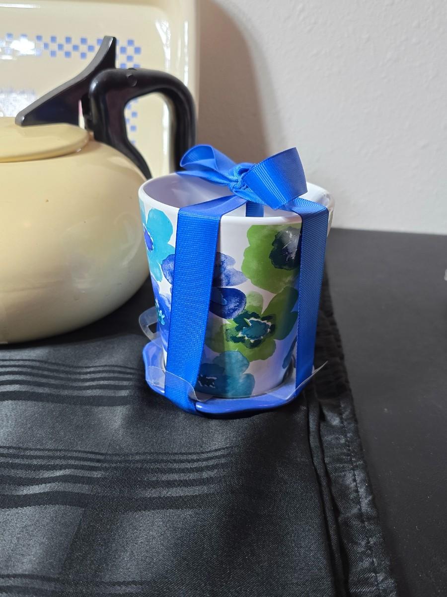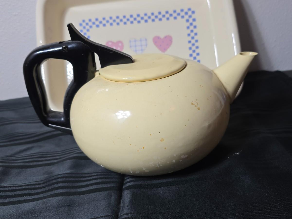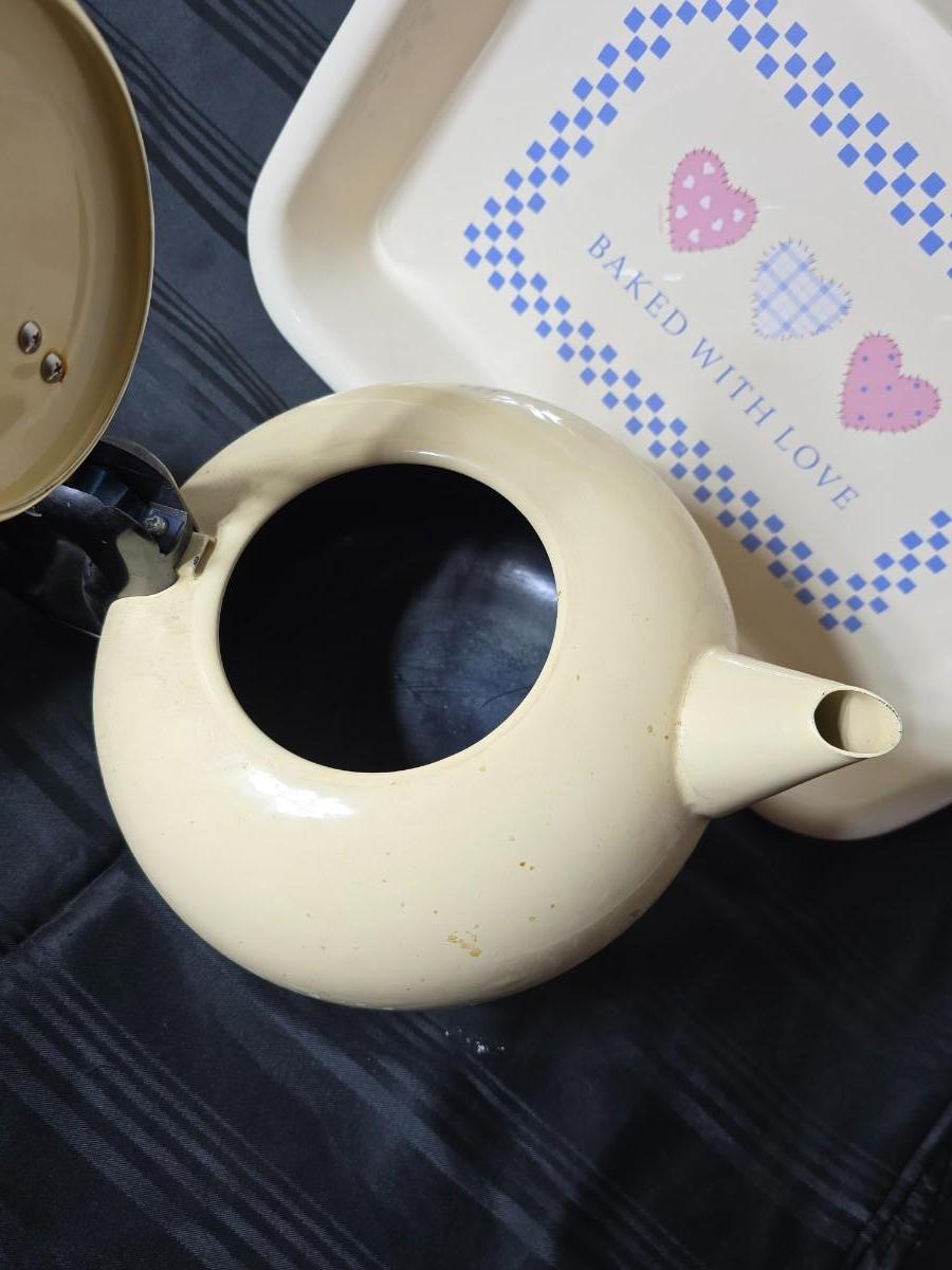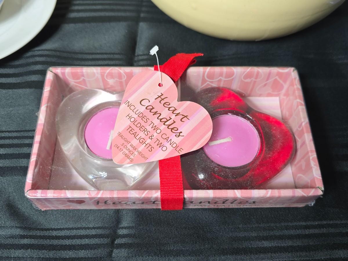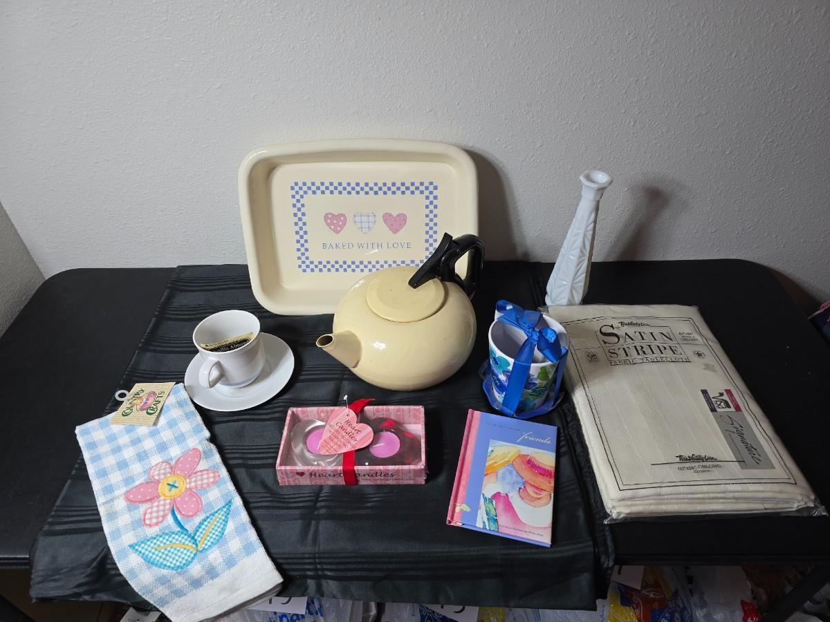 Tea time for two - Mugs - Metal tea kettle - heart candles - HMK Auntie EM Collection cake pan with matching Trivet and more!