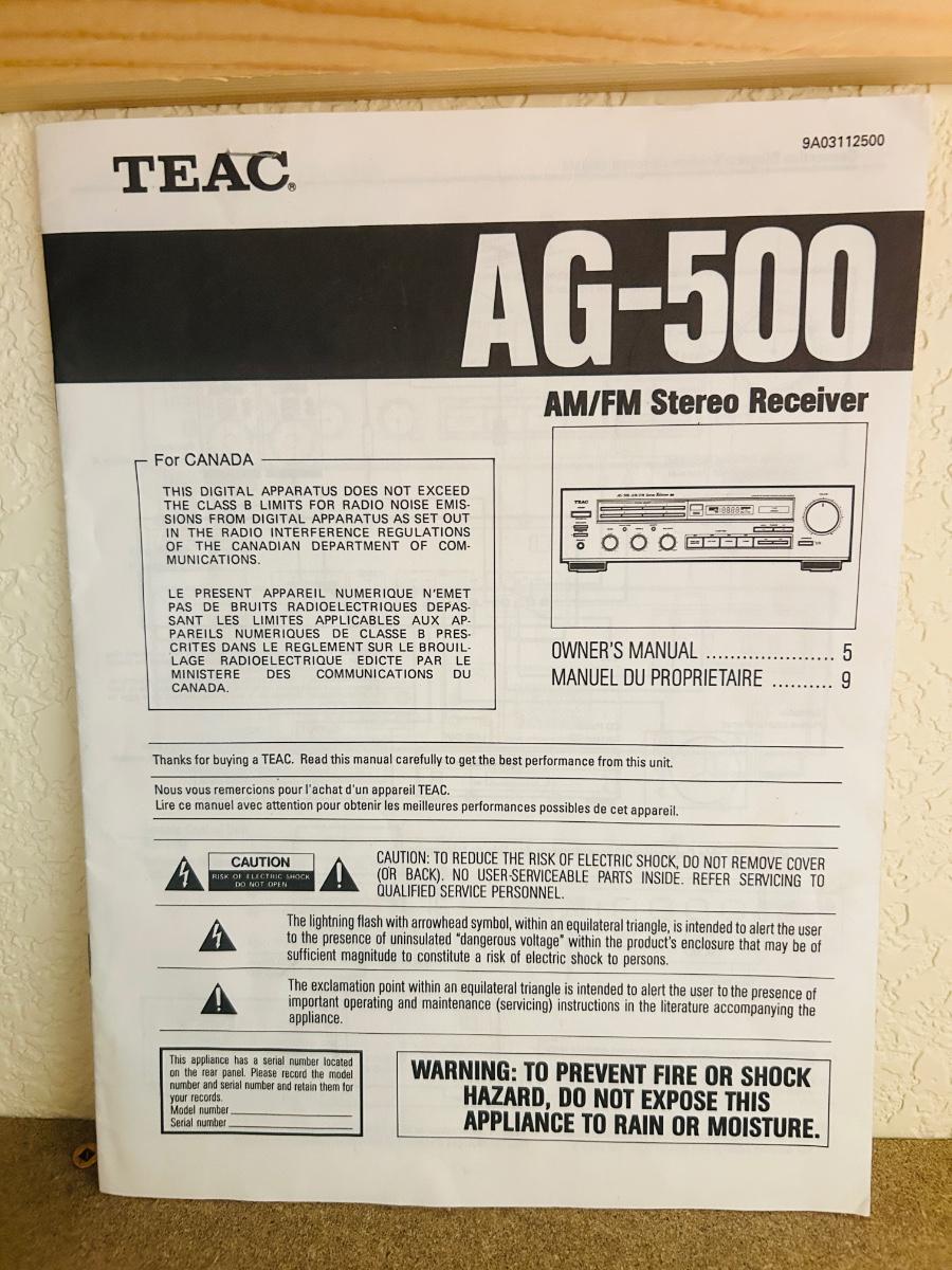 AG-500 AM/FM STEREO RECEIVER