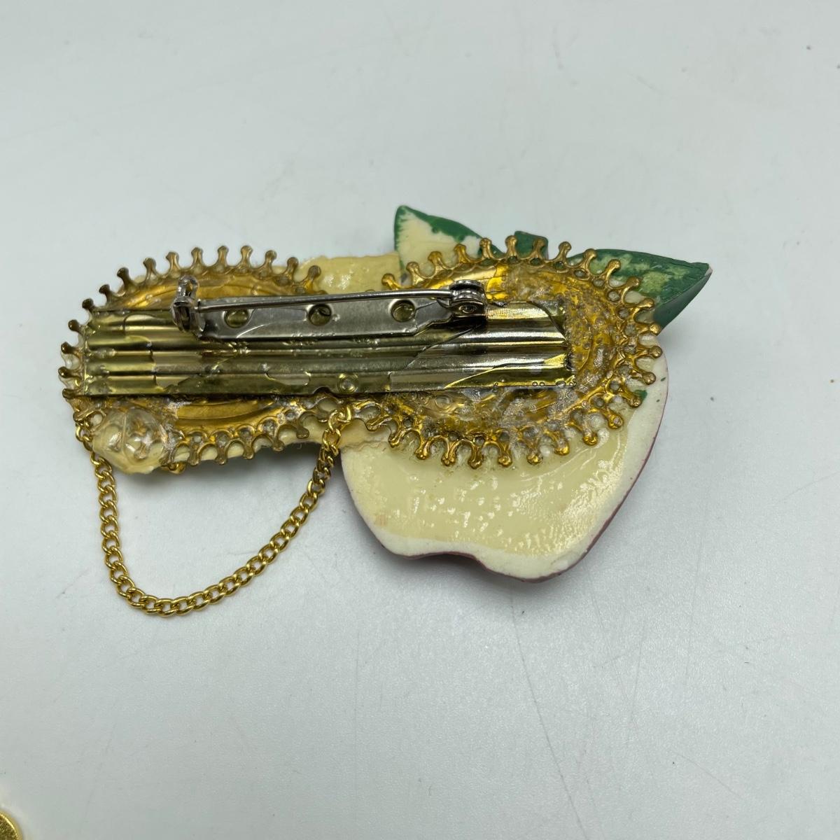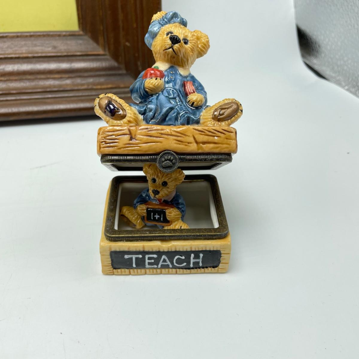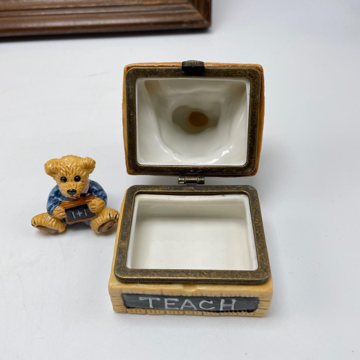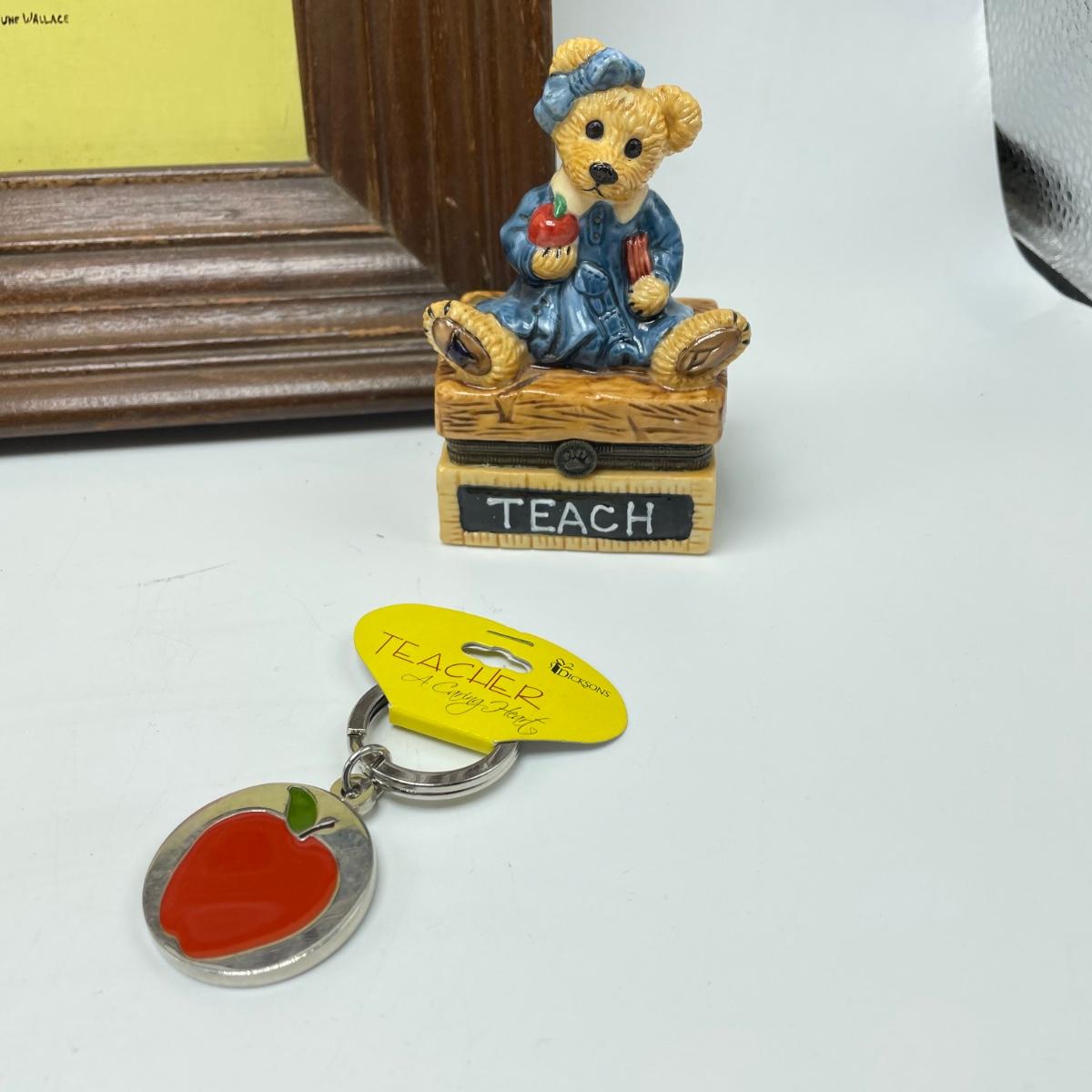 Great gifts for teachers! Three brooches, five pins, a granite-like paperweight, a key chain with original packaging plus a ceramic bear hidden in a teacher box. Lot also features a signed, hand painted bee-apple art in a wooden frame measuring 15.5” x 12.5”. See images. Shipping available.