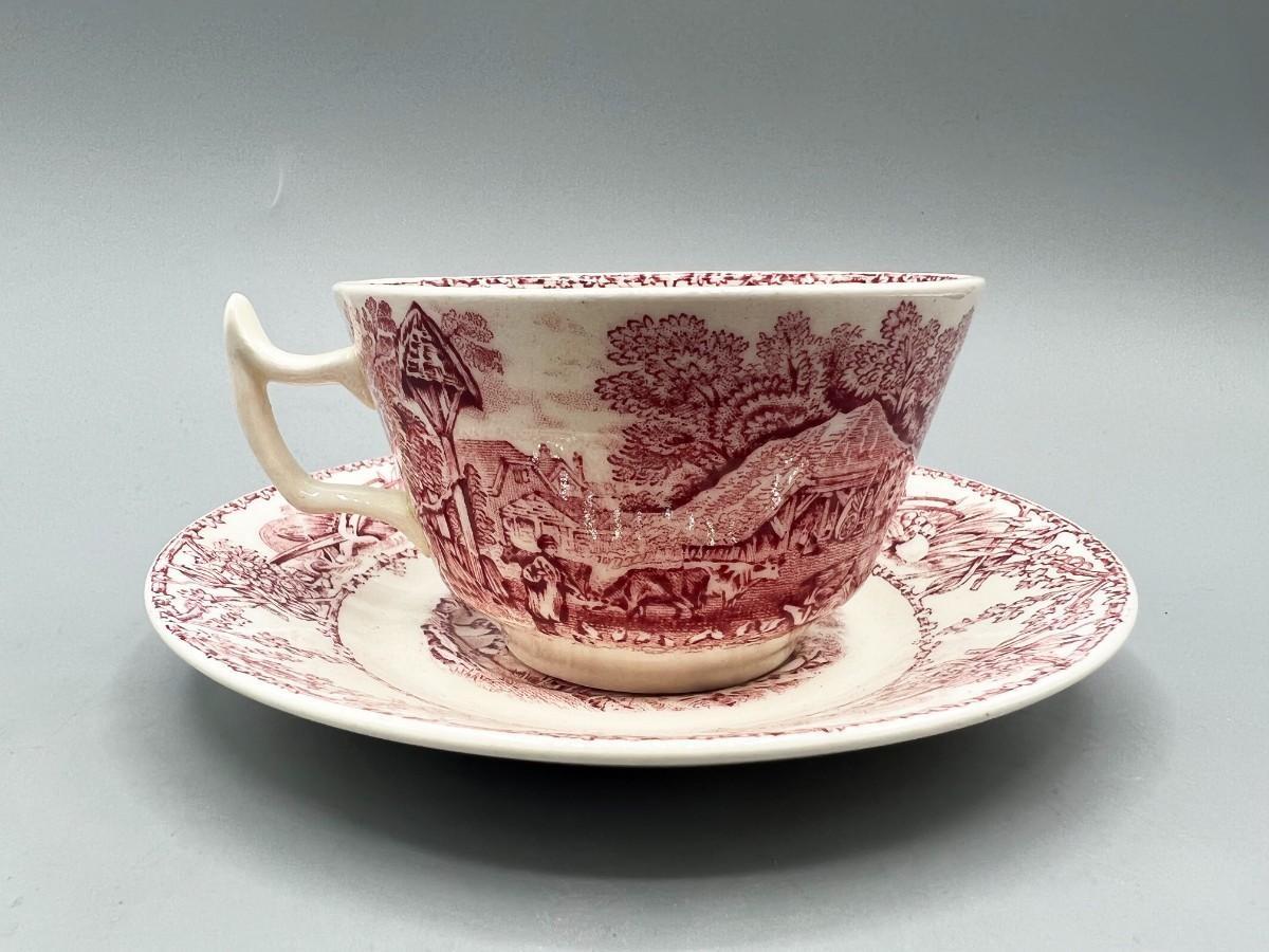 Teacup & Saucer Vintage Pastoral Davenport A J Wilkinsons England Red Transferware