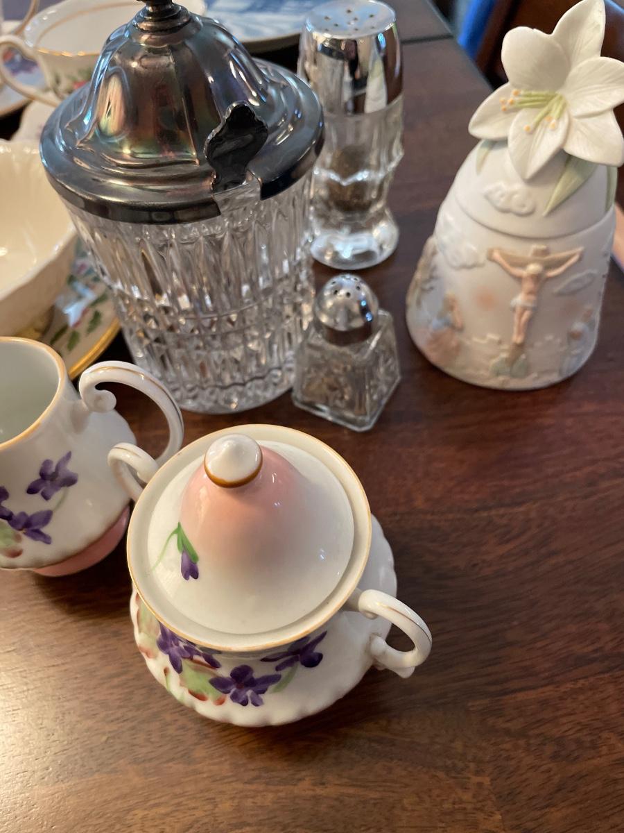 Includes Lefton candle and a few Lennox pieces with salt and pepper shakers and Crystal sugar bowl