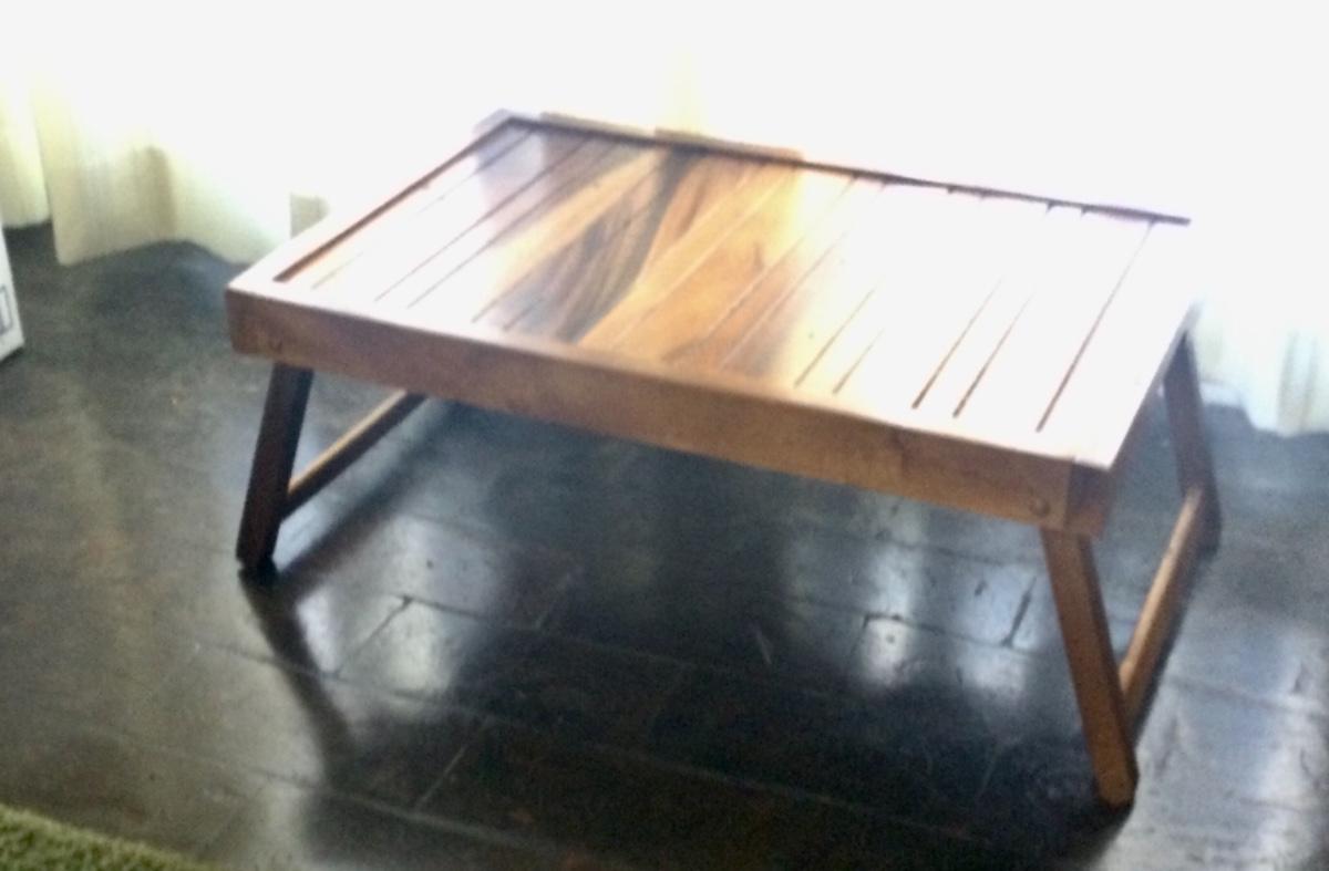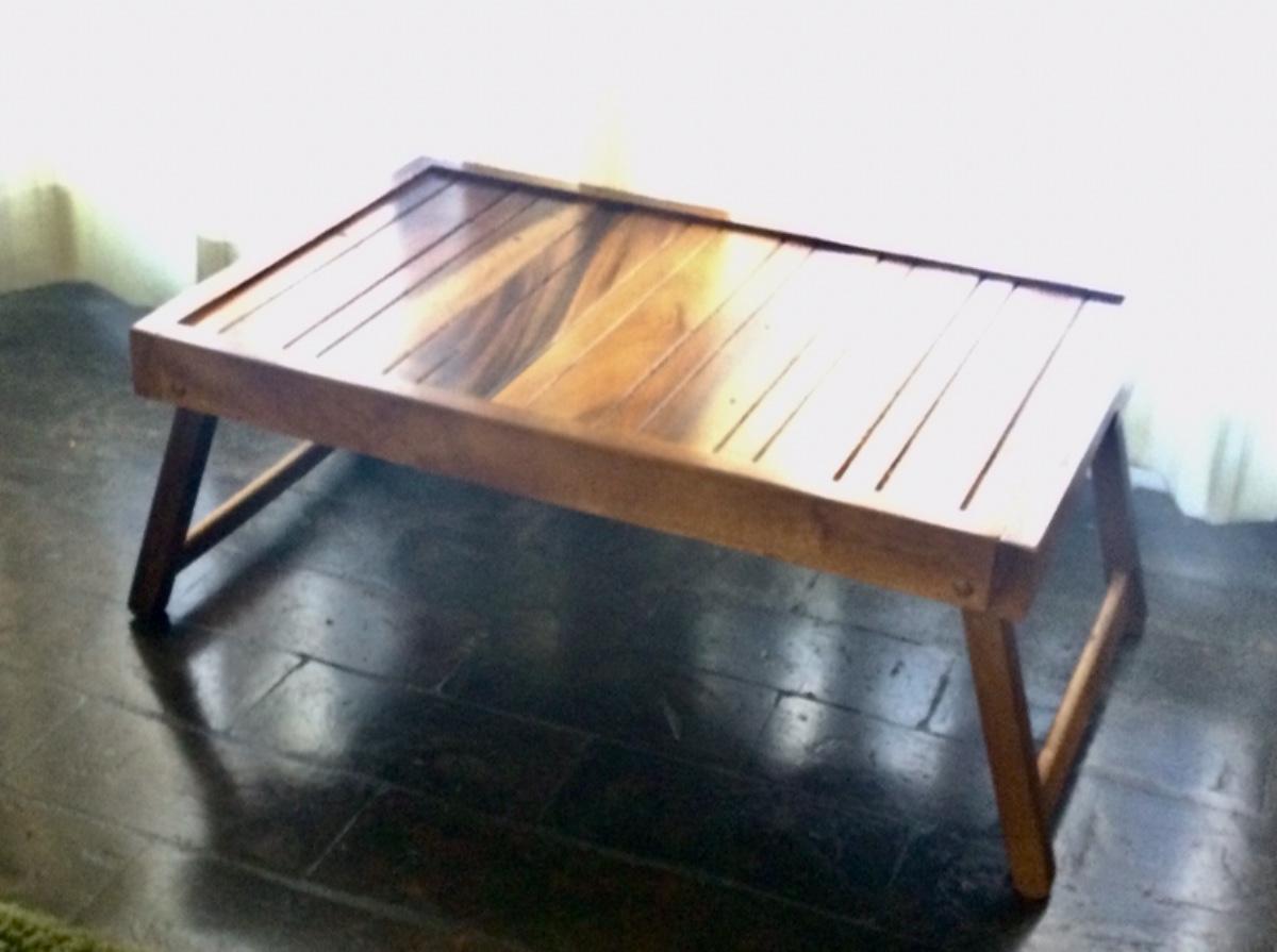 Teak bed table tray